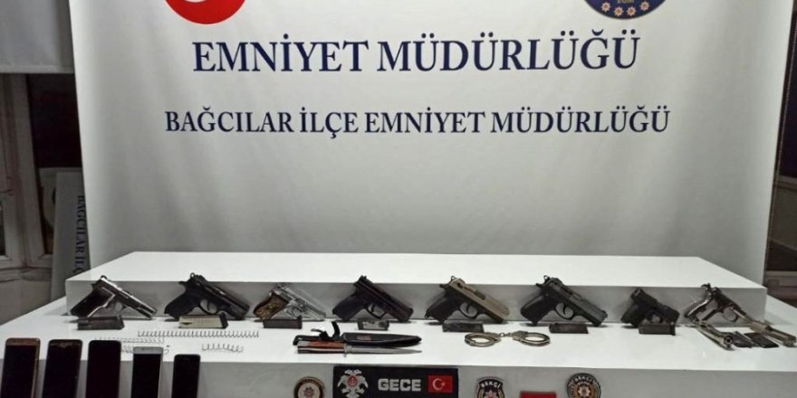 Edinilen bilgilere göre, çarşı ve mahalle bekçileri tarafından yapılan yol kontrolleri sırasında Bağcılar Sancaktepe Mahallesi'ndeki bir evde uyuşturucu ve silah ticareti yapıldığı yönünde ihbar alındı. Alınan ihbar üzerine harekete geçen polis, söz konusu adrese baskın düzenledi. Adreste yapılan aramada biri kuru sıkı olmak üzere 8 ruhsatsız tabanca, bu silahlara ait çeşitli çapta 16 mermi, 48,3 gram metamfetamin adlı uyuşturucu madde, kamera izleme cihazı ve yasa dışı ticaretten elde edildiği değerlendirilen bin 390 TL para ele geçirildi. Adreste bulunan Fatih B. (33) ve Hüseyin K. (40) isimli 2 şüpheli gözaltına alındı.