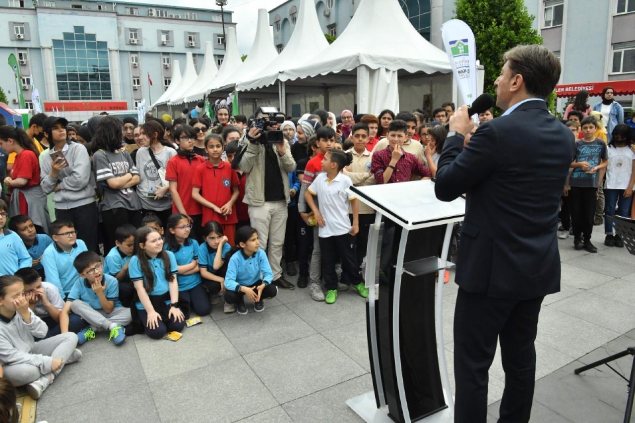Çevre Günü etkinliğinde konuşma yapan Bahçelievler Belediye Başkanı Dr. Hakan Bahadır: “ Değerli komşularım, biliyorsunuz geri dönüşüm bizim on beş yıldır kalbimize işleyen bir konu. Sayın Cumhurbaşkanımızın ve eşi Sayın Emine Erdoğan Hanımefendinin destekleriyle ülkemizde Sıfır Atık Projesi devam ediyor. Bir plastiğin doğaya bırakılmasından en az bin yıl sonra çözülmesi gerçekleşiyor. Burada vatandaşlarımızı her atığın çöp olmadığı konusunda bilinçlendirmek için geri dönüşümden yapılmış ürünleri sergiliyoruz. Çevre Günü etkinliğimize katılan öğrencilerimize tohumlu kalemler hediye ediyoruz. Çevre Günü’müz kutlu olsun” ifadelerine yer verdi.