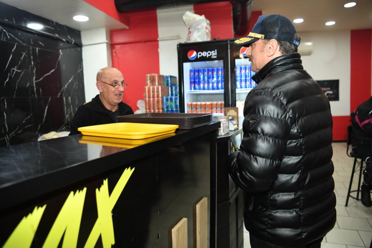 Yılın ilk saatlerine kadar devam eden denetimlere katılan Belediye Başkanı Hakan Bahadır, iş yeri çalışanlarının ve müşterilerin yeni yılını kutladı.