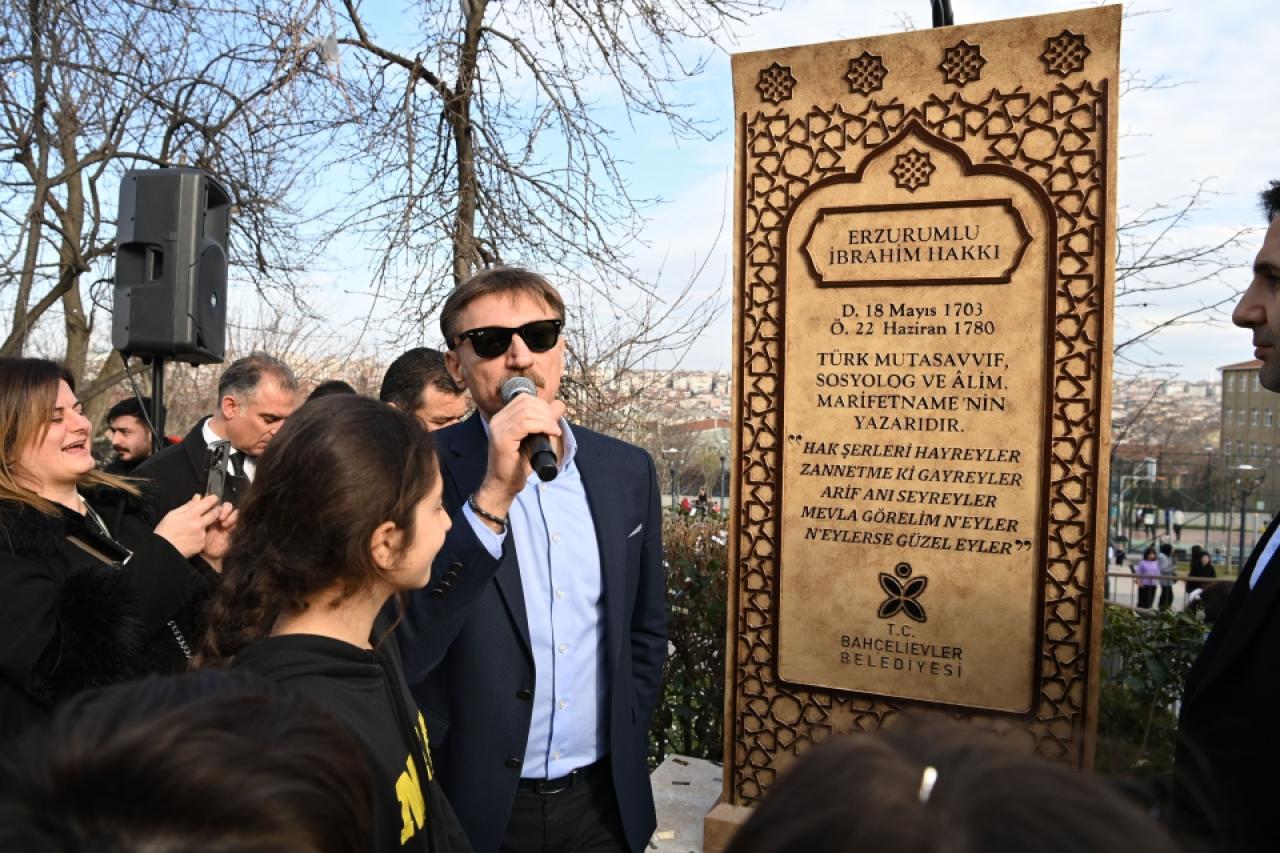 Açılışta konuşan Bahçelievler Belediye Başkanı Dr. Hakan Bahadır “Büyük Osmanlı âlimlerinden Erzurumlu İbrahim Hakkı Hazretleri’ni anmak ve onun önemli mirasına sahip çıkmak için bir aradayız. Onun adını yaşatmak, sadece geçmişimize değil, aynı zamanda geleceğimize de bir ışık tutmaktır. Yakın zamanda ilçemizin farklı noktalarında İdris-i Bitlis-i Hazretleri ve Hacı Bektaş Veli Hazretleri’nin anıtlarını açtık. Peygamber Efendimiz (SAV). ‘Yeryüzündeki âlimler, gökteki yıldızlar gibidir.’ buyuruyor. Âlimler Peygamberlerin halifeleridir. İbrahim Hakkı Hazretleri’nin mirası, bu topraklarda yaşayan her birimize rehberlik edebilecek nitelikte önemli bir mirastır.” şeklinde konuştu.