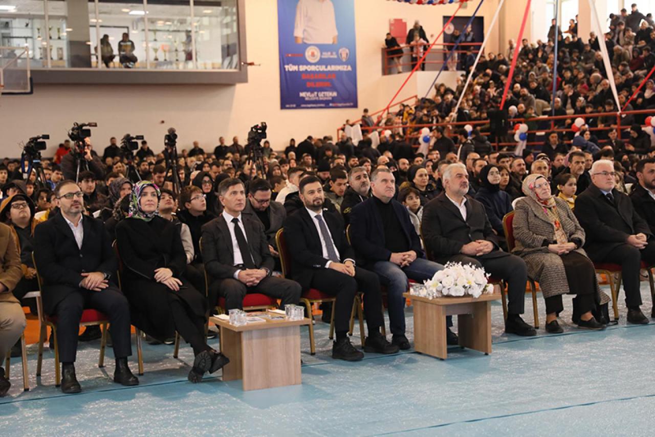 Bakan Bak, törende yaptığı konuşmada, spor yapmanın önemini belirterek, "Bu çocuklarımız her şeyi hak ediyor. Amaçlarımızdan biri de bağımlılıkla mücadele. Aileler, çocuklarını alarak spor tesislerine gelmeli. Hem vücut sağlıklarının hem de geleceklerinin güzel ve iyi olması için onların spor yapmalarını sağlamalıyız. Bütün tesisler ücretsiz emrinizde." ifadelerini kullandı.