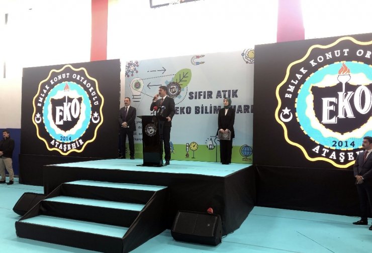 Ataşehir Emlak Konut Ortaokulu öğrencileri tarafından düzenlenen Sıfır Atık Eko Bilim Fuarı'nı ziyaret eden Çevre ve Şehircilik Bakanı Murat Kurum, 2023 yılı hedefleri doğrultusunda geri dönüşüm projeleri hakkında bilgi verdi.