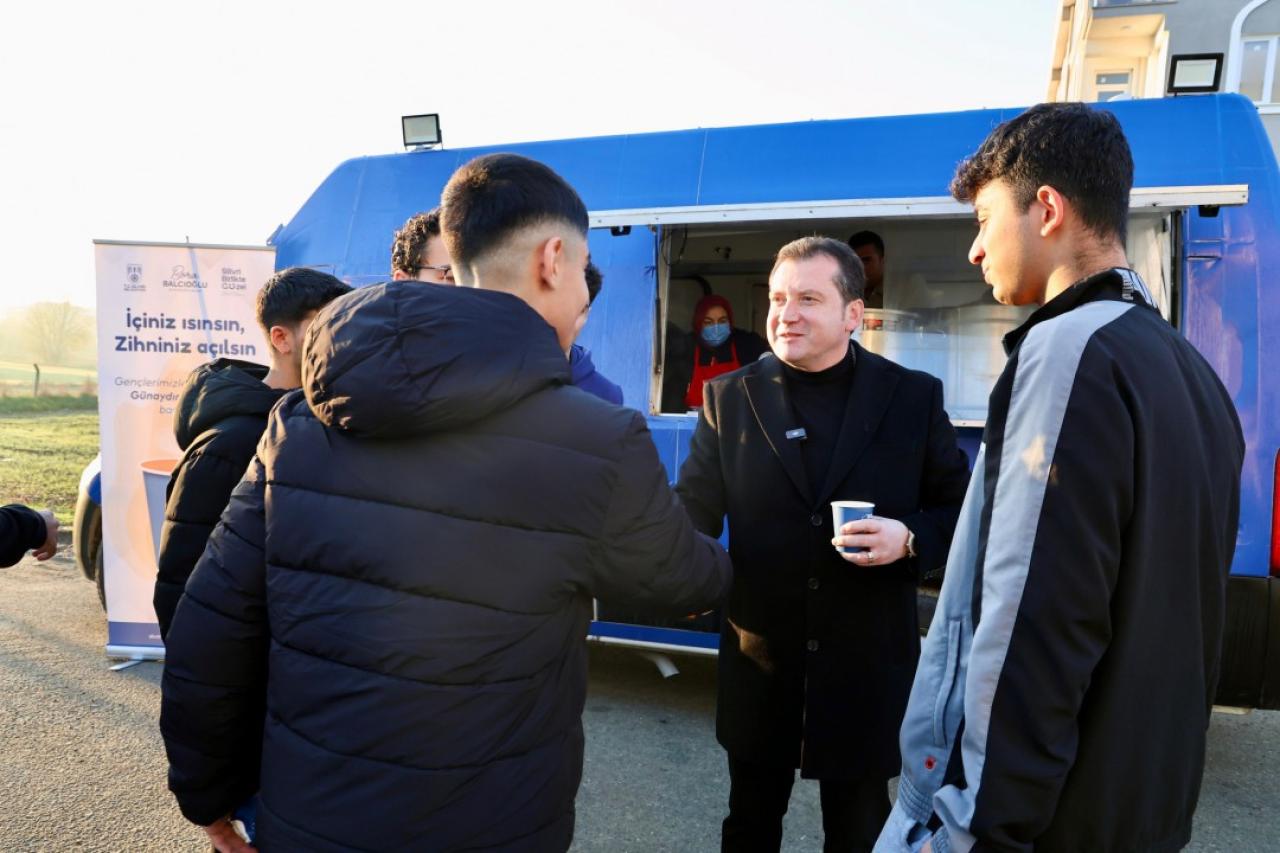Gençlerin güne sıcak başlaması için başlatılan projeden olumlu dönütler alındığını ifade eden Başkan Balcıoğlu, "Her sabah gençlerimize sıcak çorba ikramı yapmaya devam ediyoruz. Belediye olarak gençlerimize yönelik her türlü projeyi desteklemeyi sürdüreceğiz. Onların mutluluğu, bizim en büyük motivasyon kaynağımızdır” dedi.