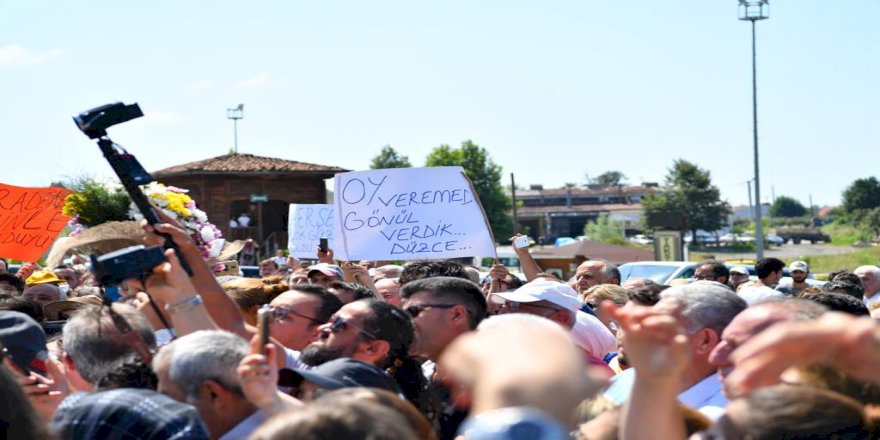 İmamoğlu, bu konuşmanın bir benzerini, makam odasına sığmayan ve binası önünde bekleyen vatandaşlara, balkondan hitap ederek yaptı. Akçakocalılar, İmamoğlu'nu, ''Türkiye seninle gurur duyuyor'' tezahüratıyla ve sevgi gösterilerinde bulunarak uğurladı. Ancak İmamoğlu'nun Akçakoca'dan çıkışı kolay olmadı. Ellerinde Türk bayrakları bulunan onlarca vatandaş, bir anda İBB Başkanı'nın aracının yolunu kesti. Vatandaşlar, araçtan inen ve kendilerini selamlayan İmamoğlu'na, ''Her şey çok güzel oldu Başkan'' diyerek destek verdi.