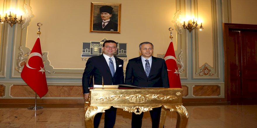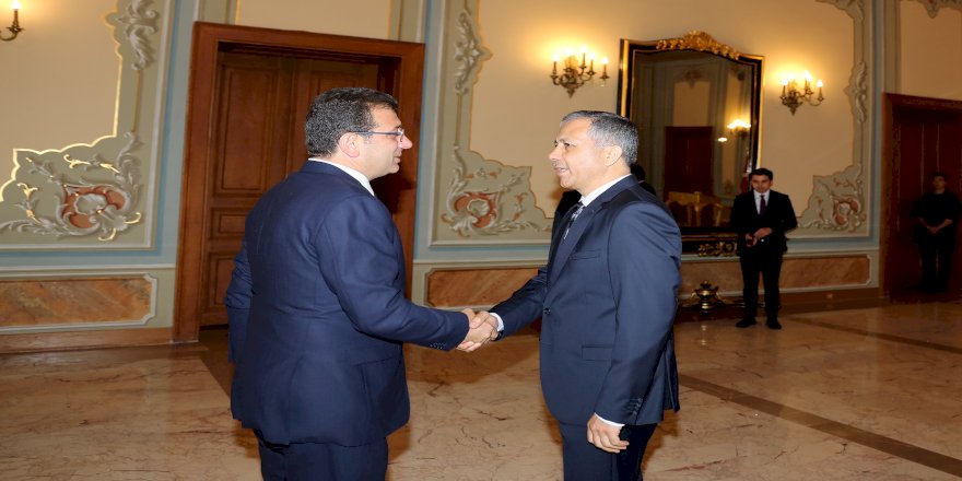 Vali Yerlikaya ile yaptığı görüşme hakkında bilgi veren İmamoğlu, “Karşılıklı sohbetimizin konusu İstanbul. Önümüzdeki aylarda nasıl bir başlangıç yapmamız gerektiğini, İstanbul'un sorunlarına temel sorunlarına eğileceğimizi, ortak nasıl hamleler yapabileceğimizi konuştuk. Açıkçası 45-50 günlük süreci konuşamadık. Onunla ilgili de ek görüşmelerimiz olacak. Devlet geleneği gereği, nezaket gereği Valimizi ziyaret ederek, önümüzdeki günlerde beklentilerimizi, onların beklentilerini, daha çok İstanbulluların ne istediğini konuştuk. Verimli bir sohbet oldu. Umarım İstanbul'a güzel hizmetlerimiz olacak iş birliği ile. Çünkü her iki kurum da devlet kurumu. Valimiz ve bizler, kurumlarla hizmet seferberliği başlatacağımızı söyledik” diye konuştu.