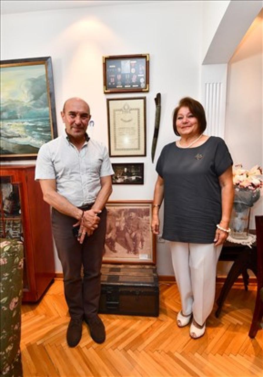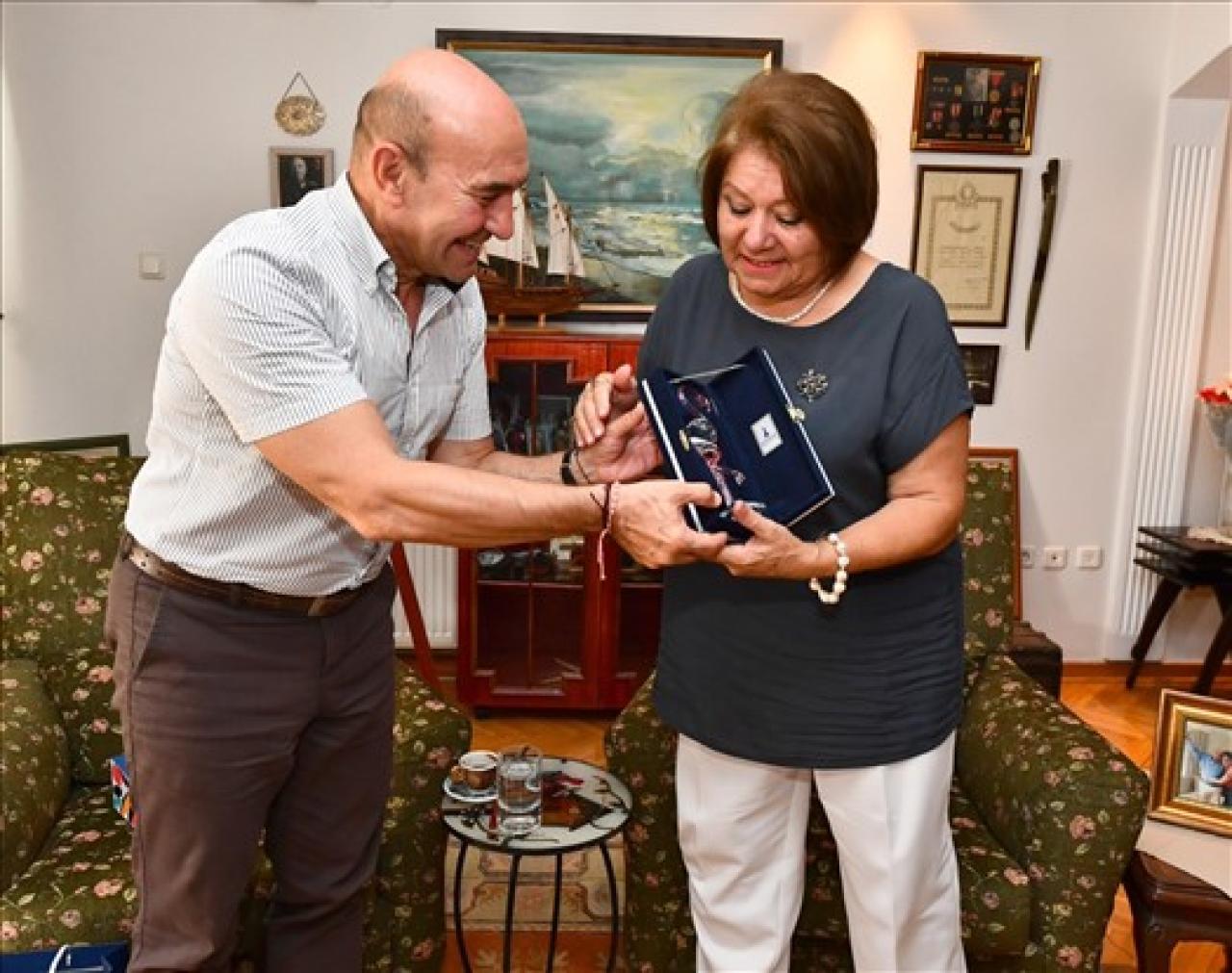 İzmir Büyükşehir Belediye Başkanı Tunç Soyer İzmir’in kurtuluşunun 100. yılı anısına kente kazandıracağı anı evi için bağış yapan ressam Ayla Erdur’u Karşıyaka'daki evinde ziyaret etti.