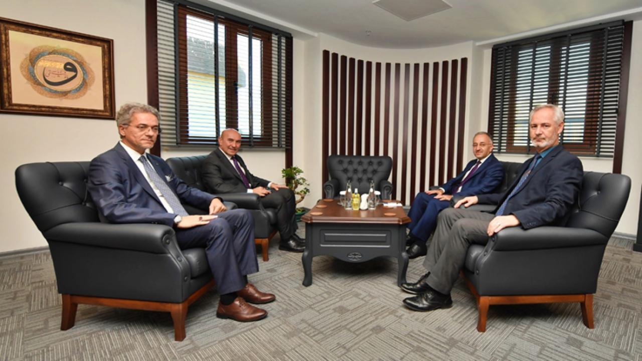 İzmir Büyükşehir Belediye Başkanı Tunç Soyer, İzmir İl Müftüsü Salih Sezik’e yeni binalarına geçtikleri için hayırlı olsun ziyaretinde bulundu.İzmir Büyükşehir Belediye Başkanı Tunç Soyer, İzmir İl Müftüsü Salih Sezik’i makamında ziyaret etti. İzmir İl Müftülüğü’nün Konak’taki yeni binasına geçmesinden dolayı hayırlı olsun dileklerini ileten Başkan Tunç Soyer, Müftü Sezik’e kentin simgesi Saat Kulesi’nin maketini takdim etti. Sezik ise Başkan Soyer’e Kur'an-ı Kerim hediye etti.
