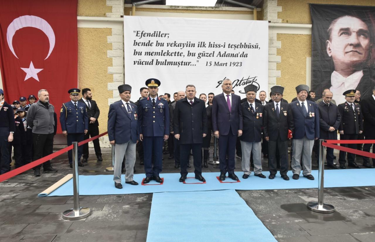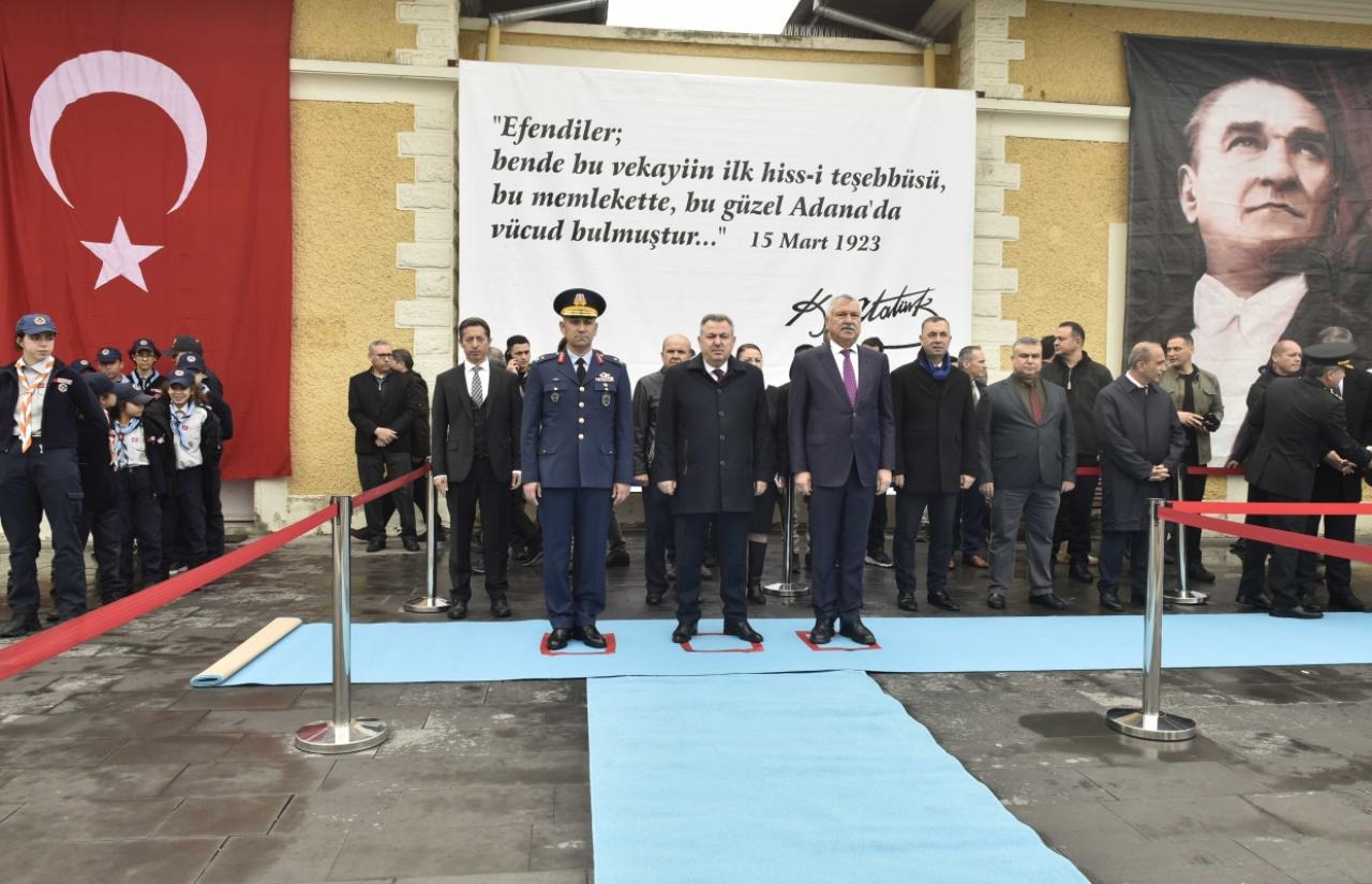 Adana Tren Garı'nda devameden programda, Atatürk'ün 15 Mart 1923'te trenle Adana'ya gelişi temsilicanlandırıldı, trenden inen bir gazi Vali Süleyman Elban'a Türk bayrağı sundu.