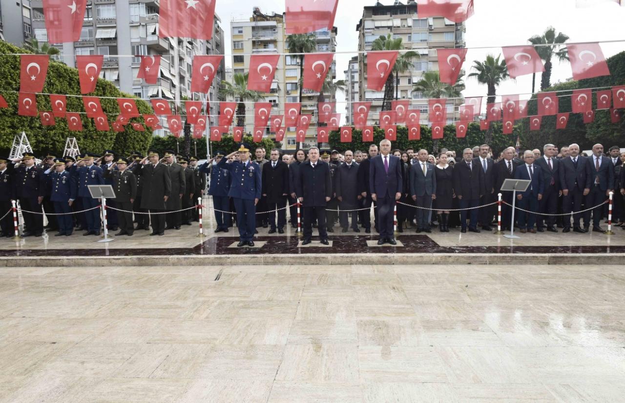 Atatürk Parkı'ndadüzenlenen etkinlikler kapsamında, Adana Valisi Süleyman Elban, AdanaBüyükşehir Belediye Başkanı Zeydan Karalar ve İncirlik 10. Tanker Üs Komutanı Hava PilotTuğgeneral Mehmet Serkan Dan Atatürk Anıtı'na çelenk koydu.