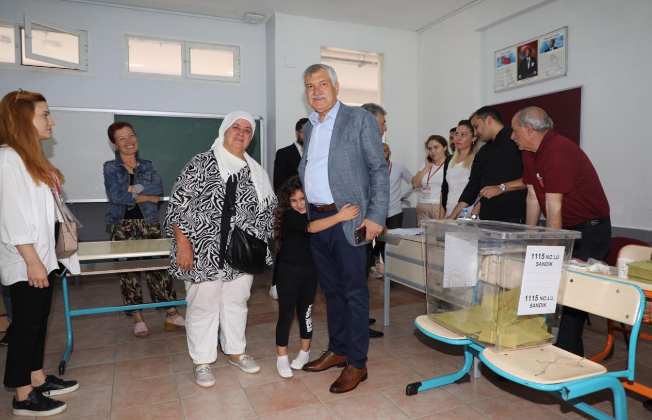 Başkan ZeydanKaralar, oy kullanmasının ardından yaptığı açıklamada şunları söyledi: “Sevgilieşim Nuray Hanım’la birlikte vatandaşlık görevimizi yerine getirdik. Oy kullanmakyarınlara umut sarkıtmak, ‘bu ülke bizim’ demektir” dedi.
