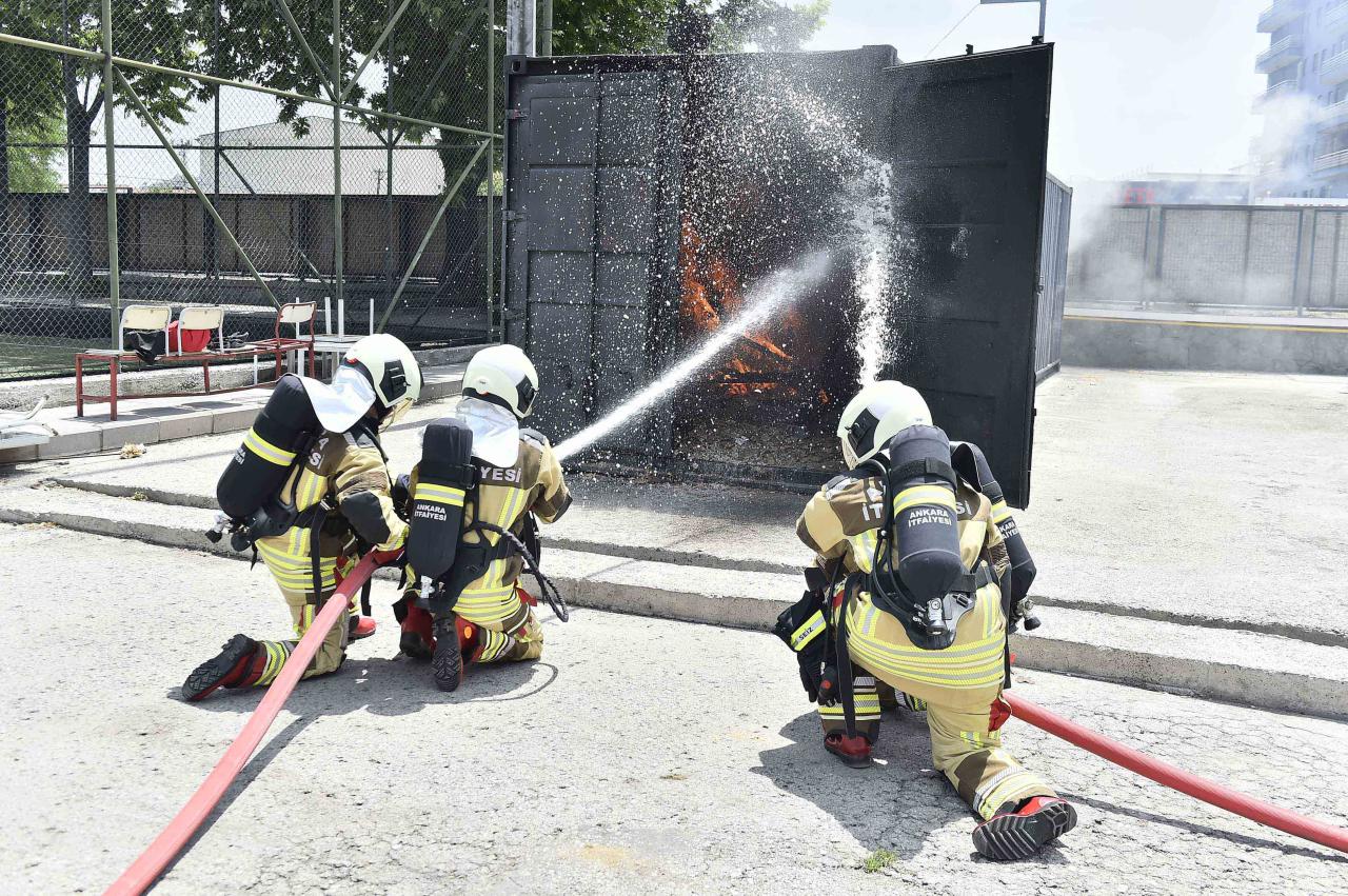 Son dönemde kadın itfaiyeci istihdamını artıran Ankara İtfaiyesi, yeni personele yönelik saha eğitimi çalışmalarına da hız kesmeden devam ediyor. Bu kapsamda Ankara İtfaiyesi Merkez İstasyonu’nda 32 kadın itfaiyeci ile yangınlara müdahale konusunda eğitim tatbikatı gerçekleştirildi.