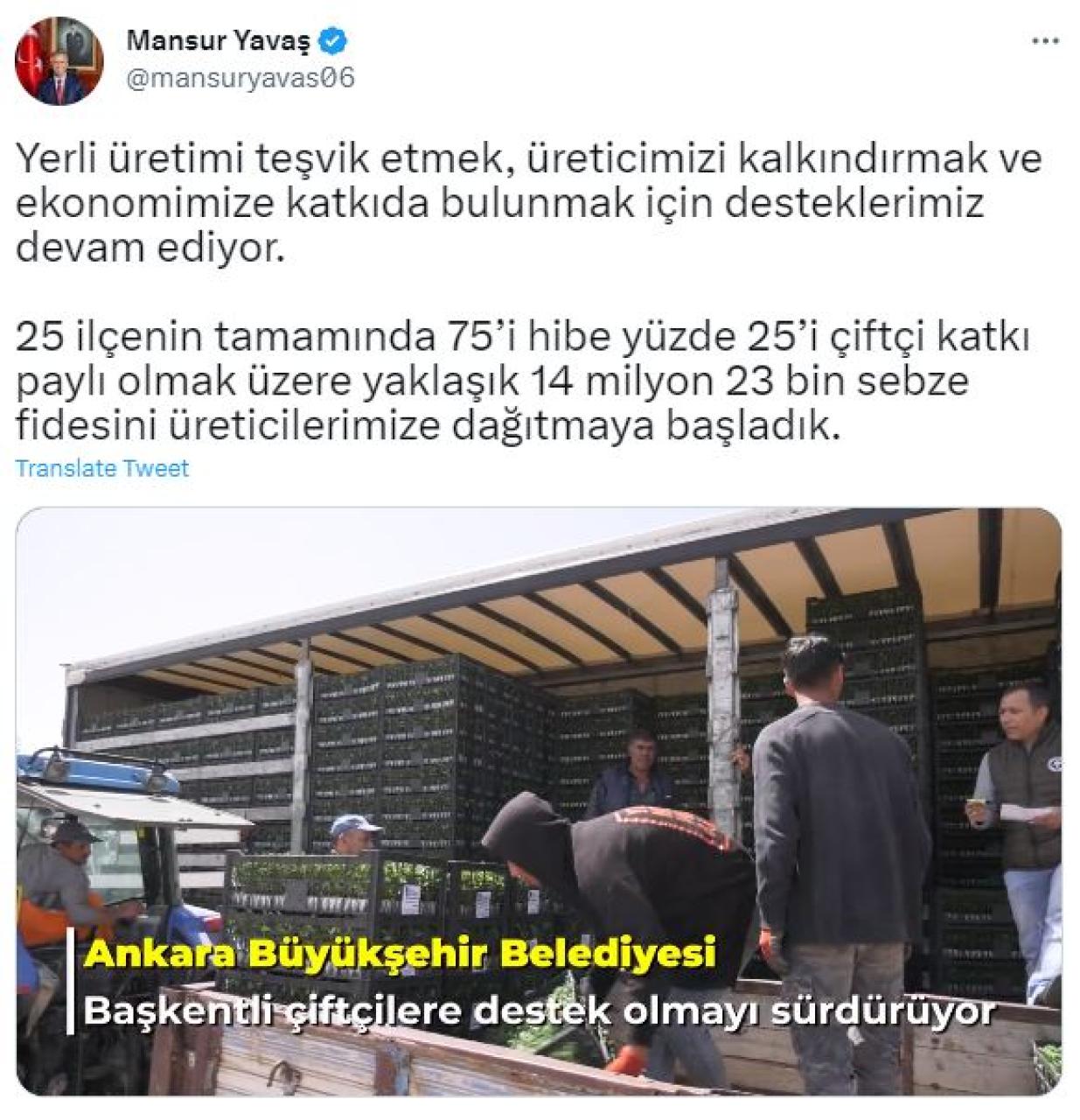 Başkentte başlattığı kırsal kalkınma hamlesiyle Türkiye’ye örnek olan projelere imza atan ABB Başkanı Mansur Yavaş sosyal medya hesapları üzerinden şu paylaşımda bulundu:
