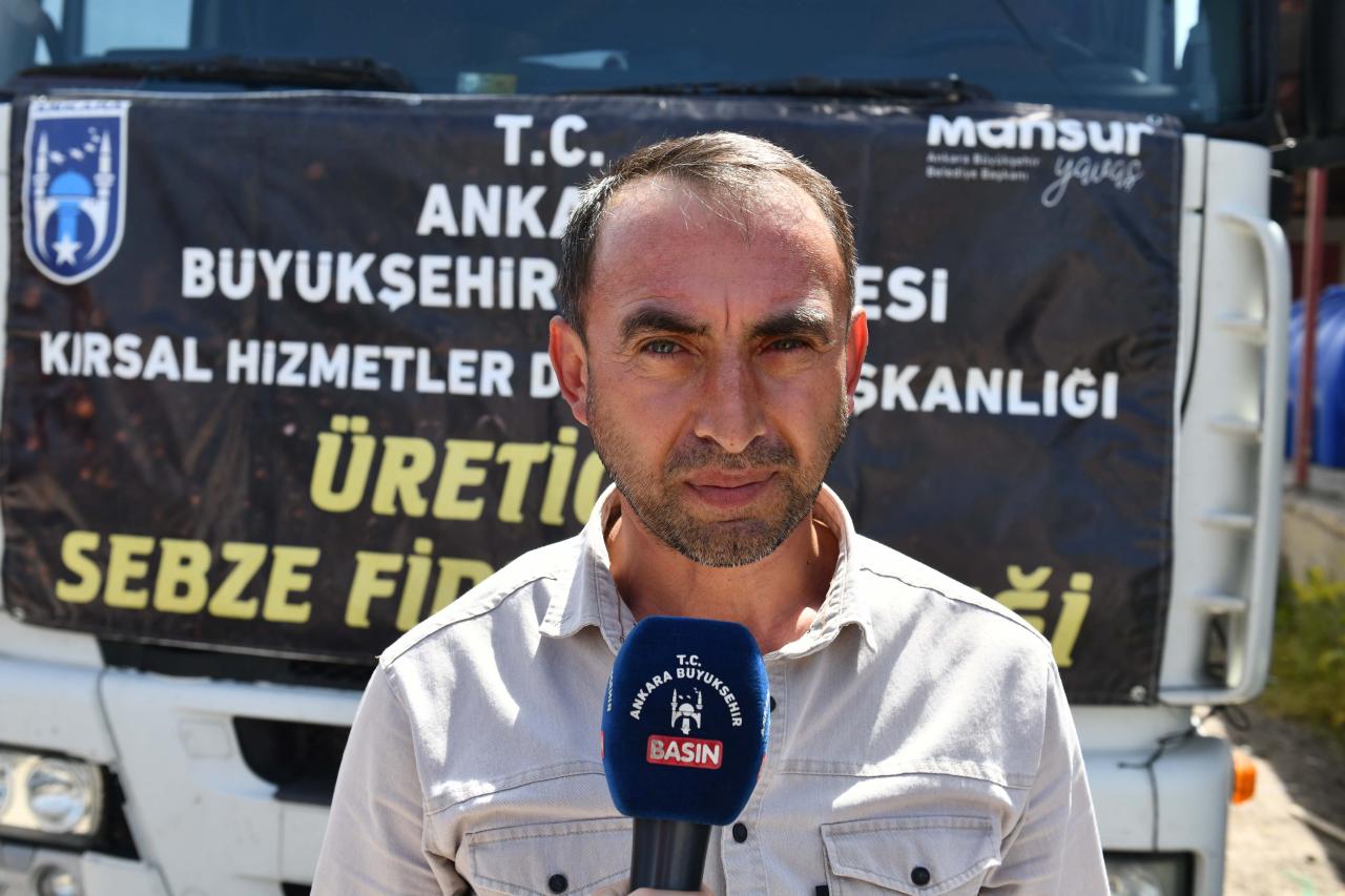 -Halil İbrahim Aslan:“Geçen sene de fide aldım, bu sene de alıyorum. Ürünler çok güzel çıkıyor. Mazot, gübre ve birçok destekten de yararlanıyorum. Ankara Büyükşehir Belediyesine teşekkür ediyorum.”