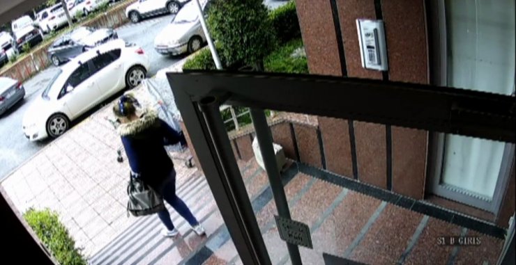 Şahsın ziynet eşyalarını çaldıktan sonra kaçış anı ise saniye saniye güvenlik kamerasına yansıdı. Görüntülerde, bir kadının binaya giriş anı görülüyor. Daha sonra da binadan çıkıp koşarak kaçtığı görülüyor.