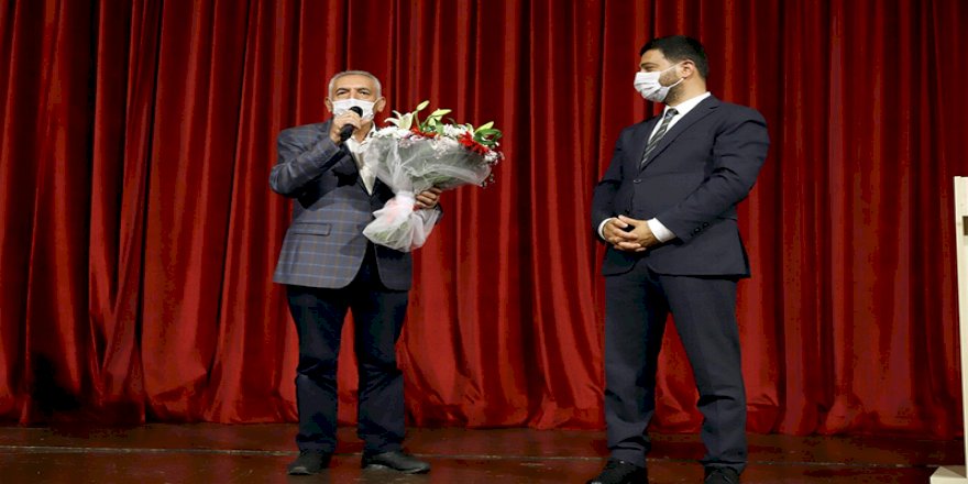 İstişare toplantısının ardından belediye personeli Başkan Öztekin'e çiçek takdim etti.