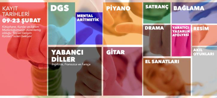 Maltepe Belediyesi Kütüphane, Kurslar ve Mesleki Eğitim Müdürlüğü, 12 farklı dalda kişisel eğitim kursları düzenleyecek. Kurslar, Dikey Geçiş Sınavı (DGS), yabancı dil (İngilizce, Fransızca ve Farsça), mental aritmetik, piyano, gitar, bağlama, satranç, drama, resim, el sanatları, akıl oyunları ve yaratıcı yazarlık atölyelerinden oluşuyor. 23 Şubat’a kadar başvuruları devam edecek kurslara kayıt yaptırmak isteyenler, müdürlüğün İdealtepe, Mızrak Sokak’taki hizmet binasına başvuracak. Kurslar hakkında ayrıntılı bilgi almak isteyenlerse (0216) 549 10 13 - 549 10 15 numaralardan bilgi edinebilecek. (07.02.2017)