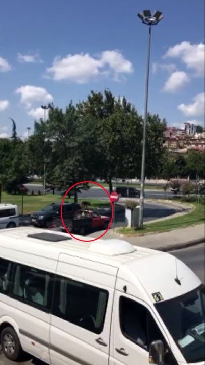 Kağıthane İmrahor Caddesi üzerinde çekilen görüntüde ise bir köpeğin kamyonetin şoför kabininin üzerinde seyrettiği görüldü. Görenlerin şaşkınlık yaşadığı olayda, köpeğin açık havada yaptığı yolculuk kameralara yansıdı.