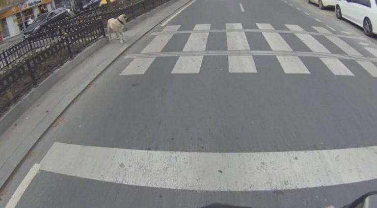Bebek'te cadde üzerinde seyir halinde olan motosikletli, yaya geçidinin başında bekleyen köpeği görünce durarak geçmesine izin verdi. Yaya geçidini kullanan köpek kameralara yansırken, Kağıthane'de ise bir köpek kamyonetin şoför kabininin üzerinde seyretti.