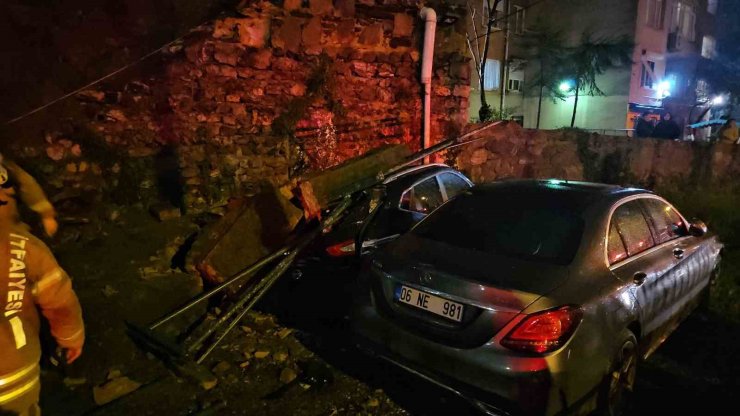 BEŞİKTAŞ’TA İSTİNAT DUVARI 8 ARACIN ÜSTÜNE ÇÖKTÜ