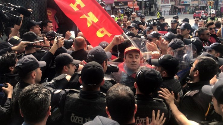 Beşiktaş'ta toplanan Halkın Kurtuluş Partisi (HKP) üyeleri, Taksim'e yürümek istedi. Beşiktaş Barbaros Bulvarı üzerinde güvenlik önlemi alan polis ekipleri, grubu dağılmaları yönünde uyardı. Ancak filamalar ve dövizler taşıyarak slogan atan eylemciler, Taksim'e doğru yürüyüşe geçmek istedi. Bunun üzerine gruba müdahale eden polis, göstericileri gözaltına aldı.