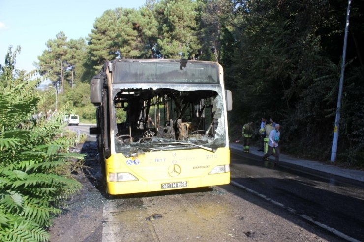 Beykoz Anadolu Kavağı'nda İETT otobüsü alev alev yandı. Otobüste bulunan 15 kişi hızla dışarı çıkarılırken itfaiyenin müdahalesiyle yangın söndürüldü. Otobüsün yandığı anlar cep telefonu kamerasına yansıdı.