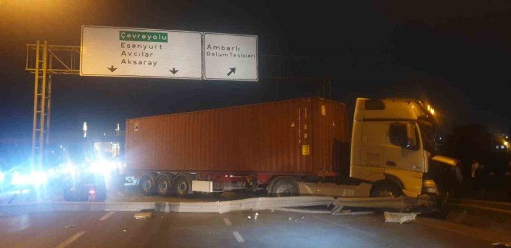 BEYLİKDÜZÜ’NDE KONTROLDEN ÇIKAN TIR ORTALIĞI BİRBİRİNE KATTI: 1 ÖLÜ, 2 YARALI
