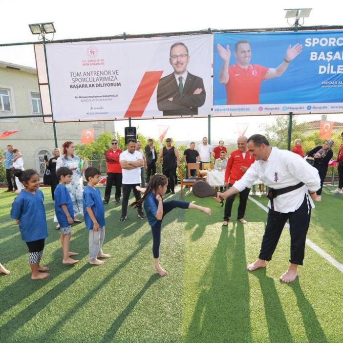 Beyoğlu Belediyesi spora ve sporcuya verdiği destekle geleceğin sporcularını yetiştirmeye devam ediyor. Belediyeye ait ilçenin altı farklı noktasından bulunan spor tesislerinde her yıl yaklaşık yüz bin gence eğitim veriliyor. Savunma sporlarından yelkene, yüzmeden okçuluğa kadar onlarca branşta verilen eğitimlerle uluslararası müsabakalarda Türkiye’yi temsil edecek genç sporcular yetiştiriliyor. Yoğun ilgi gören kursların başında ise Karate Kursu geliyor. 2021-2022 eğitim döneminde Karate kursuna katılan 150 öğrenci, alanında uzman antrenörler eşliğinde eğitim aldı. Eğitimlerini tamamlayan genç sporcular için Emir Efendi Spor Tesisinde Diploma Töreni düzenlendi. Etkinliğe Beyoğlu Belediye Başkanı Haydar Ali Yıldız, sporcular ve aileleri katıldı.