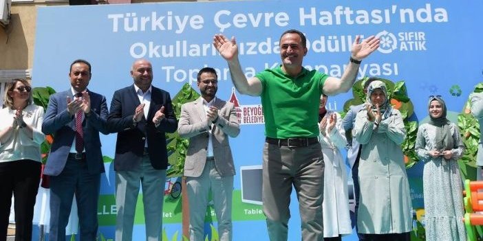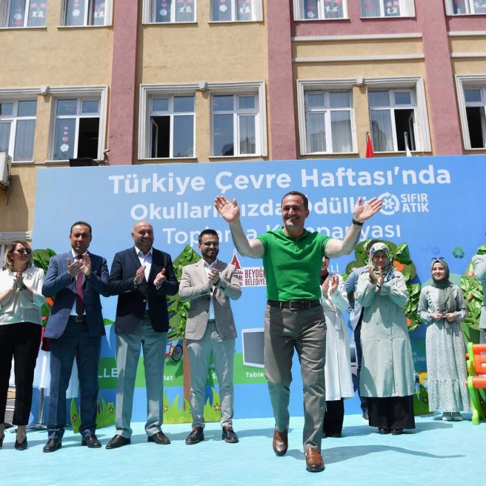 Ödül töreninde konuşan Beyoğlu Belediye Başkanı Haydar Ali Yıldız, “Aslında periyodik olarak bütün okullarımızı ziyaret ediyoruz. Dolayısıyla çocuklarımızla aramda yıllardır oluşan bir sevgi var. Karşılıklı muhabbetimiz var. Ayrıca Çevre Haftası münasebetiyle farkındalık oluşturmak istiyoruz. Daha yeşil bir Beyoğlu daha yeşil bir İstanbul daha yeşil bir Türkiye hedefine ulaşmak için çalışıyoruz. Cumhurbaşkanımız Recep Tayyip Erdoğan’ı koyduğu hedeflere bir adım daha katkı sunabilmek bakımından Beyoğlu Belediyesi olarak hazırlıklarımız var. Şubat ayında hem bitkisel hem tekstil hem de elektronik atıklar konusunda bir kampanya başlattık. Bu anlamda yaklaşık 9 bin 80 kilogram ağırlığında atık elde ettik. Bugün bunları getiren öğrencilerimize bisiklet, tablet, akıllı saat hediye edeceğiz. Çocuklarımız önümüzdeki dönemde çevre ve dönüşüm konusunda daha hassas olacak” dedi.