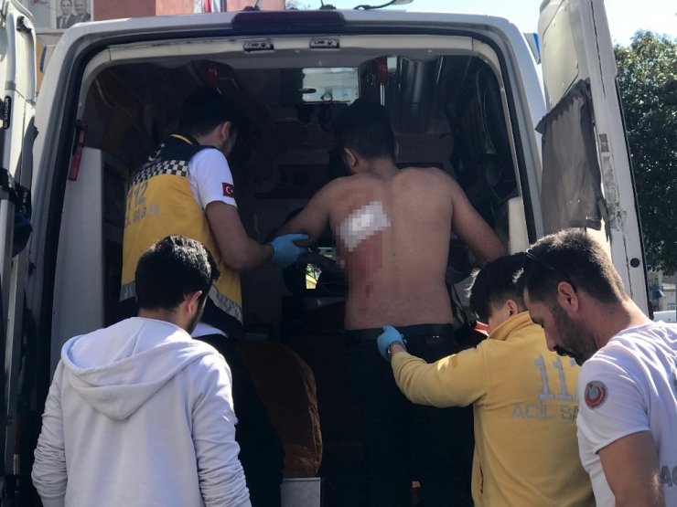 Sırtından yaralandığı görülen S.S.'ye sağlık ocağında ilk müdahale yapılarak ambulansla hastaneye kaldırıldı. Eşi D.S. ise polis ekipleri ile birlikte ifadesi alınmak üzere emniyete götürüldü.