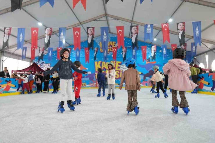 BEYOĞLU’NDA ÖĞRENCİLER YARIYIL TATİLİNİN TADINI BUZ PİSTİNDE KAYARAK ÇIKARDI