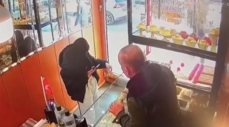 Olay, 6 Mart Perşembe günü Beyoğlu Camiikebir Mahallesi'nde saat 15.30 sıralarında meydana geldi. İddiaya göre sevgilisiyle caddedeki kuyumcuya giden Firdevs Ç., 250 bin lira değerindeki altın tacı beğendi. Tacın fiyatını duyunca büyük bir hayal kırıklığına uğrayan kadın sevgilisiyle beraber oradan ayrıldı. Ertesi gün tek başına kuyumcuya giden Firdevs Ç., önce altın tacın fotoğrafını çekti ardından tacı da alıp kaçtı. Neye uğradığını şaşıran kuyumcu ise kadını yakalamak için peşinden koştu ancak başarılı olamadı. Kadının tacı çaldığı anlar ise kameraya yansıdı. Görüntülerde, kadının altın tacın fotoğraflarını çektiği ardından kaçtığı görülüyor. Ayrıca iş yeri sahibinin de kadını yakalamaya çalıştığı görülüyor.