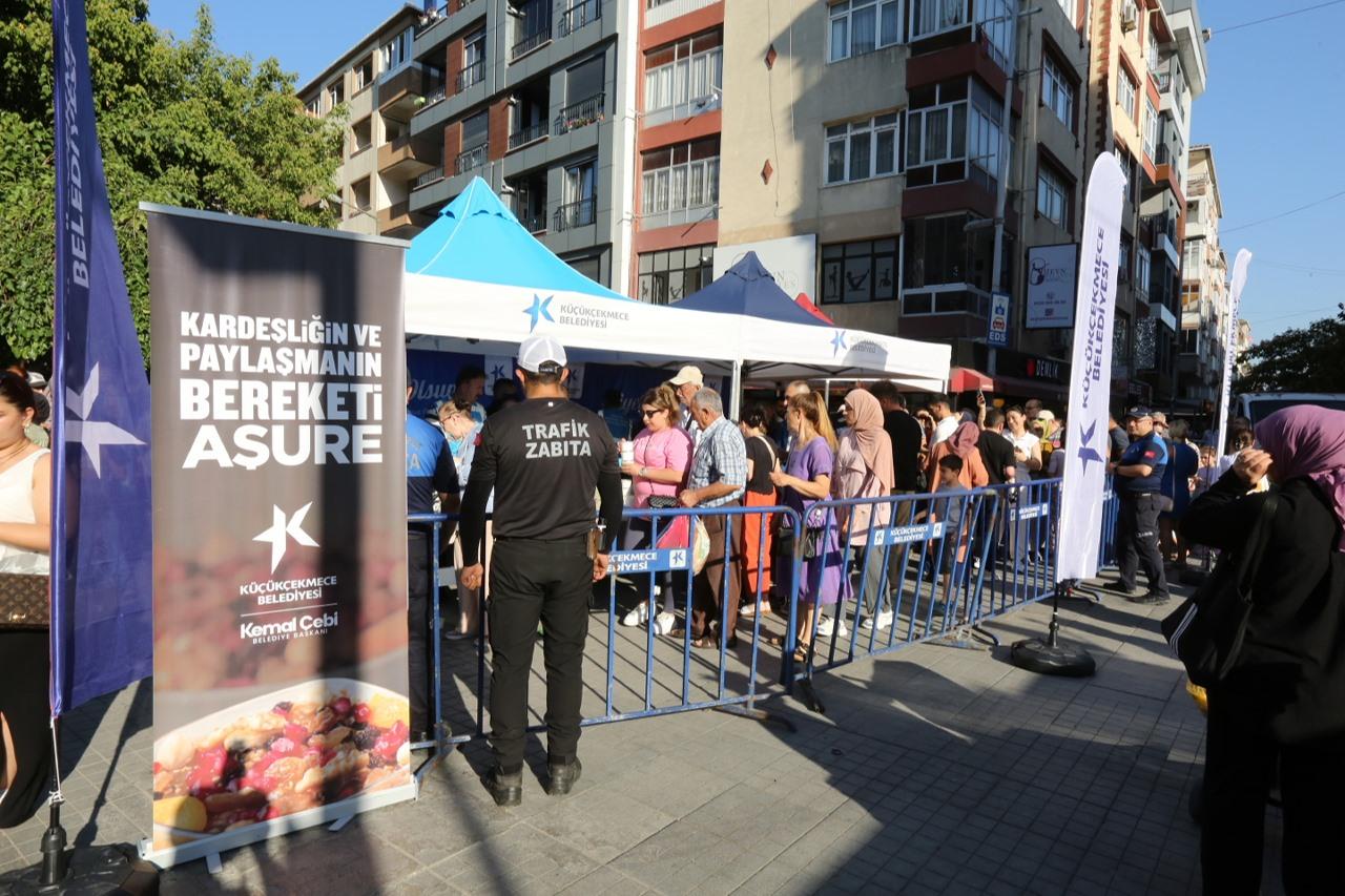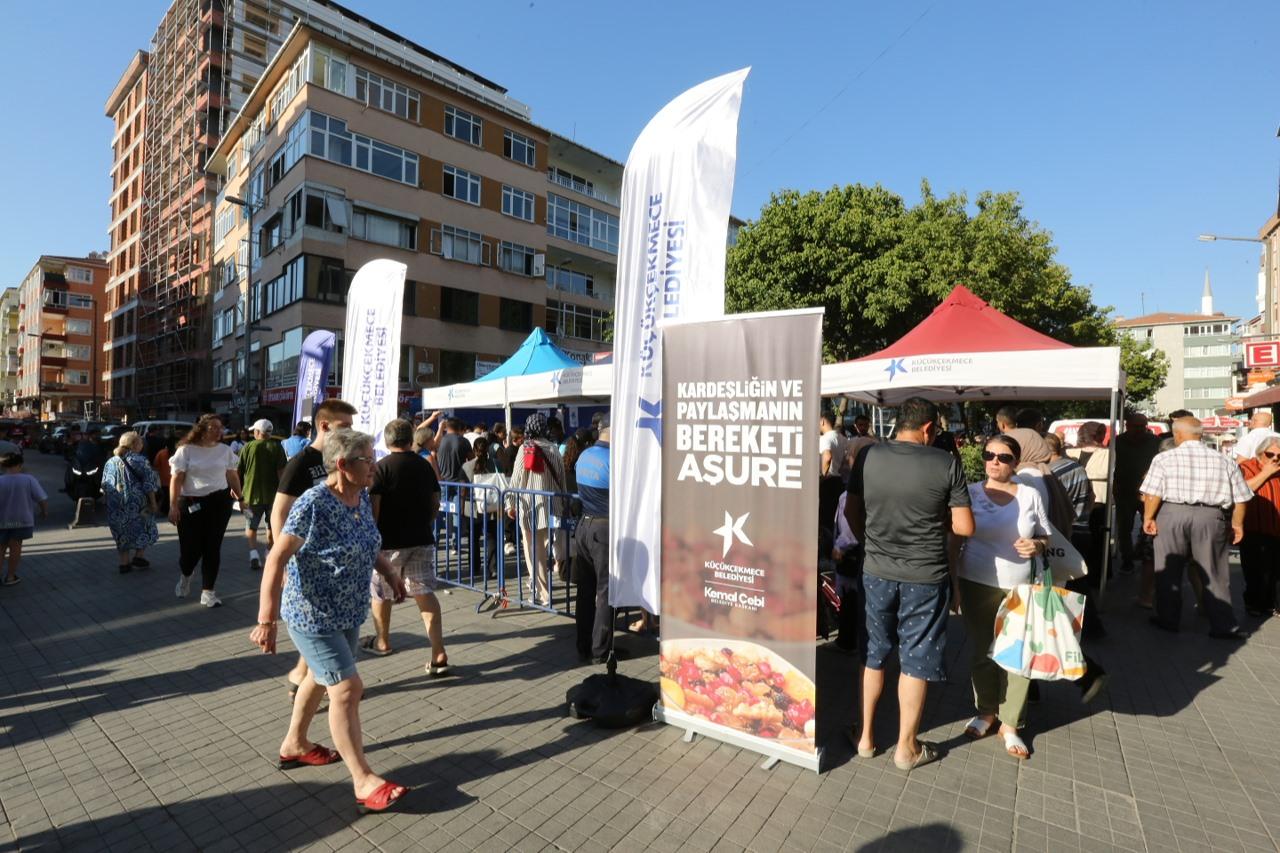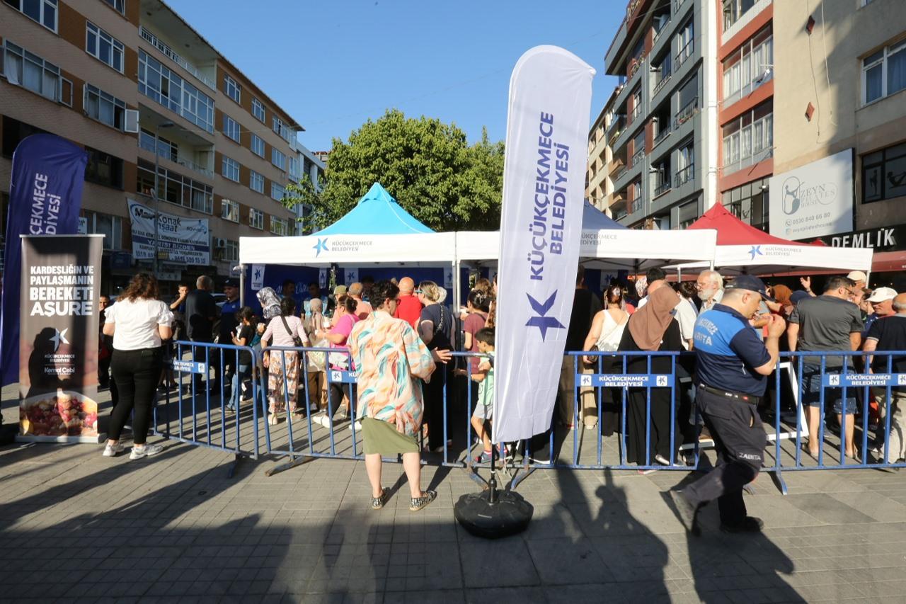 Küçükçekmece Belediyesi Aşevi’nde hazırlanan aşureler yaklaşık bir hafta boyunca; Arenapark AVM önü, Sefaköy metrobüs durağı, Fatih Mahallesi Pazar Alanı, Halkalı Marmaray önü ve Söğütlüçeşme Meydanı gibi ilçenin farklı noktalarında saat 18:00 ile 20:00 arasında vatandaşlara ikram edilecek.