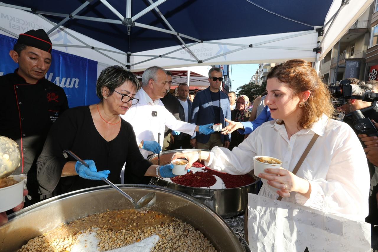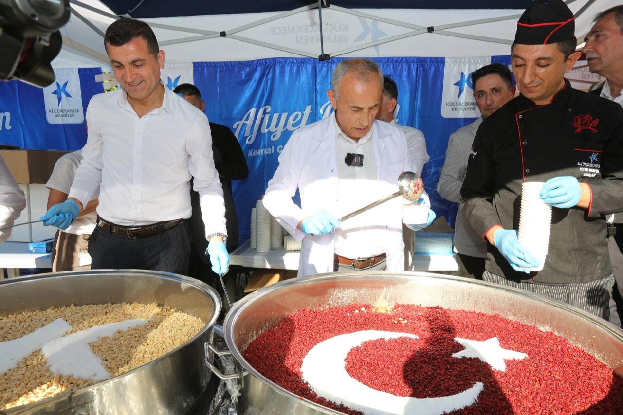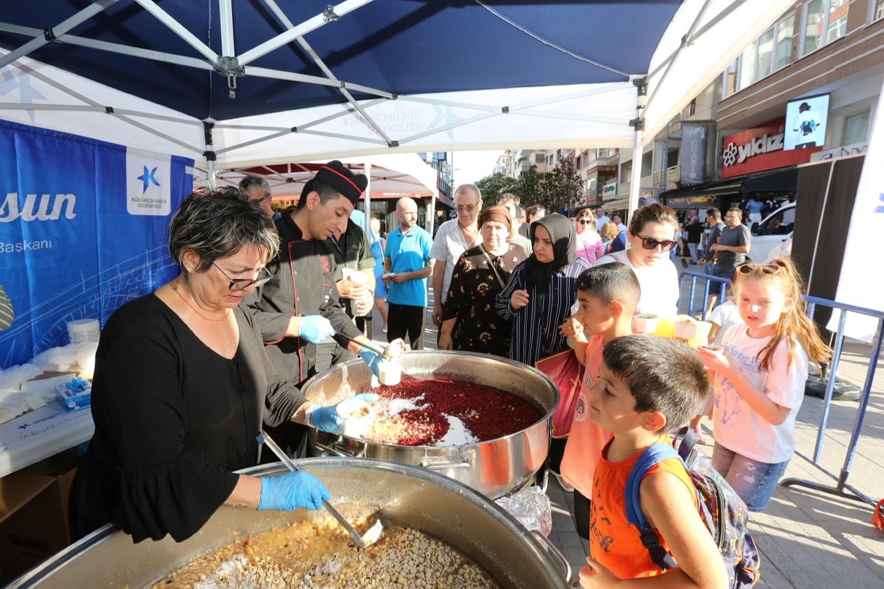 Küçükçekmece Belediyesi Aşevi’nde hazırlanan aşureler yaklaşık bir hafta boyunca; Arenapark AVM önü, Sefaköy metrobüs durağı, Fatih Mahallesi Pazar Alanı, Halkalı Marmaray önü ve Söğütlüçeşme Meydanı gibi ilçenin farklı noktalarında saat 18:00 ile 20:00 arasında vatandaşlara ikram edilecek.