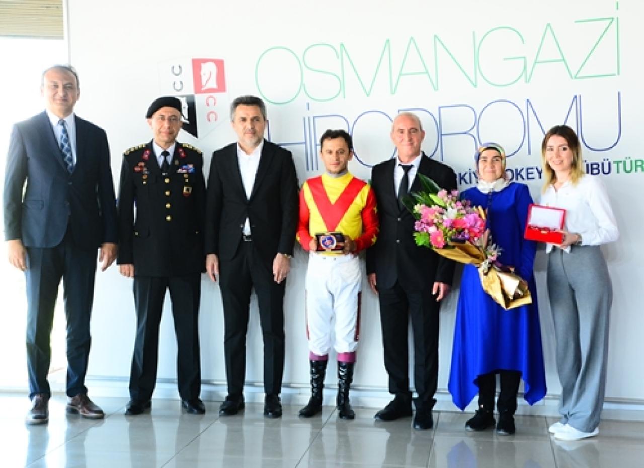 Ayrıca, Jandarma Mali Albay Hüsnü Zafer Kömürcü, kazanan safkanın jokeyi Özcan Yıldırım’a ödülünü takdim etti.