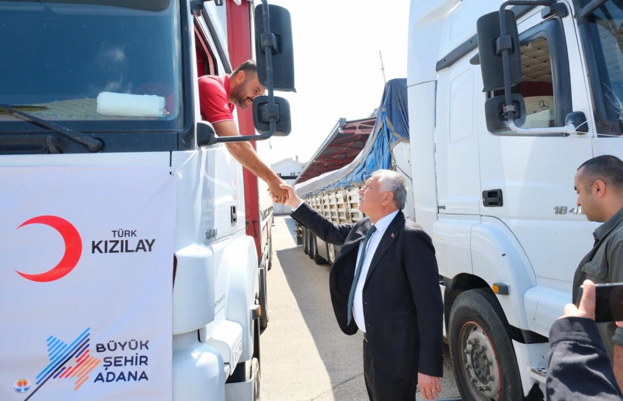 BaşkanZeydan Karalar sözlerini şöyle sürdürdü: “Bugün Büyükşehir’in yaptığı yardımıKızılay aracılığıyla mağdurlara gönderiyoruz. Bu yardımı Kızılay aracılığıylailetmek en doğru yoldu. Biz ülkemizdeki ve çevre ülkelerdeki mağdur insanlara,onların kimliğine bakmaksızın zaman zaman yardım gönderiyoruz. GeçmişteIrak’taki Türkmenlere de yardım gönderdik, bugün mağdurlar Suriye’dekiinsanlar. Onların ihtiyaçları için yardım gönderiyoruz. En kısa sürede FilistinGazze’deki kardeşlerimize yardım edeceğiz. Adana Büyükşehir Belediye Meclisiüyelerimize, yardım gönderme talebimizi onayladıkları ve kabul ettikleri içinteşekkür ediyorum. Bugün de Filistin Gazze ile ilgili yardım talebimiz gündeme gelecek.Onaylayacaklarını düşünüyorum. Böylece katledilen, bombalanan, aç bırakılan,her açıdan mağdur edilen Filistin Halkına destek göndermek istiyoruz.Savaşların, şiddetin sonlanmasını istiyoruz. Türkiye Cumhuriyeti’nin KurucusuBüyük Önder Mustafa Kemal Atatürk’ün ‘Yurtta Sulh Cihanda Sulh’ sözünün nederece önemli olduğunu bugün çevremizde süren savaşlardan, yaşanan acılardandolayı bir kez daha anlıyoruz. İyi ki Yüce Rabbimiz bize Mustafa Kemal Atatürkgibi bir lideri bahşetmiş. Savaşların sonlanması, insanların acı çekmemesidileğiyle bugün insanı yardım tırlarımızı yola çıkarıyoruz.”