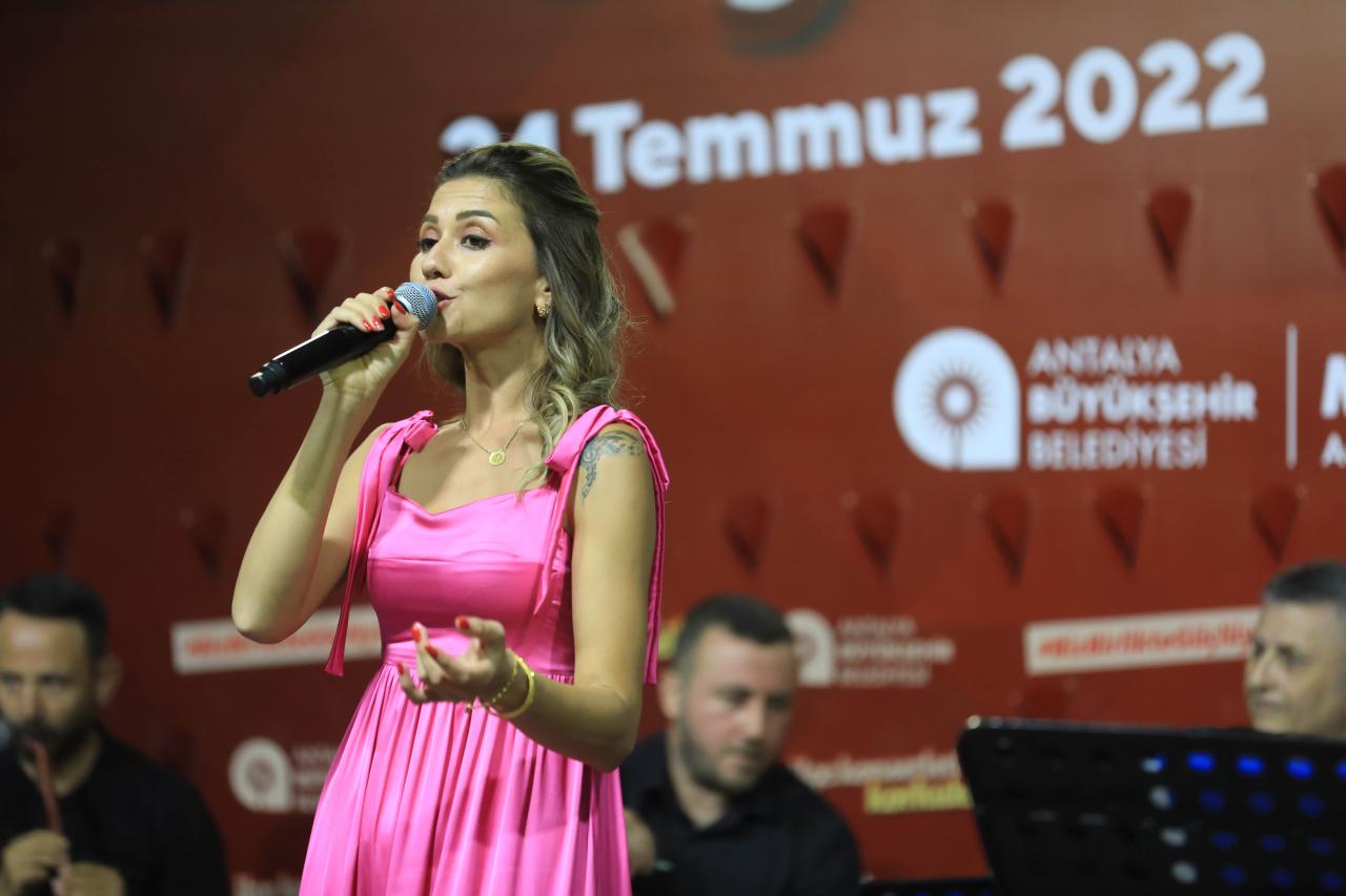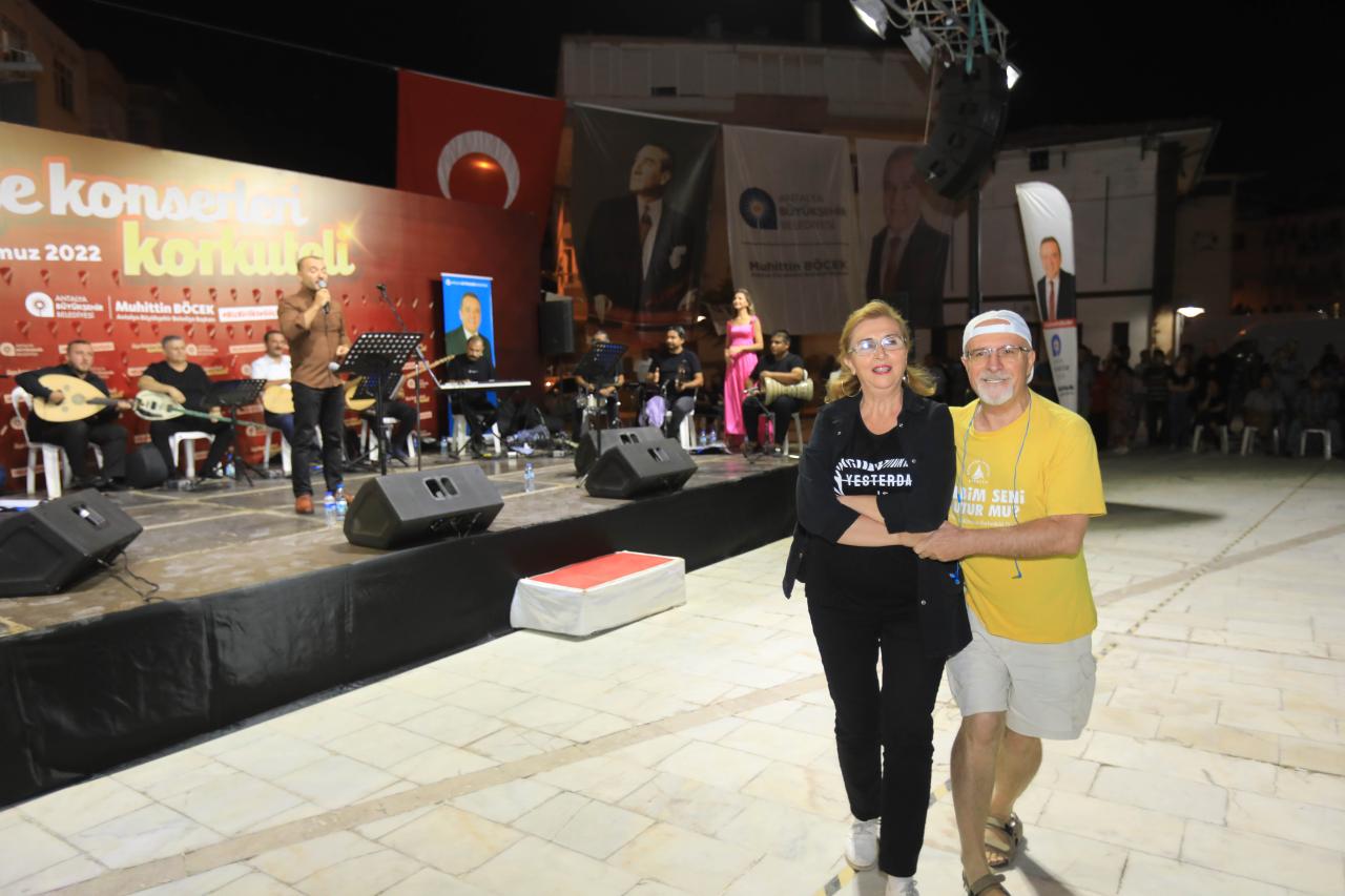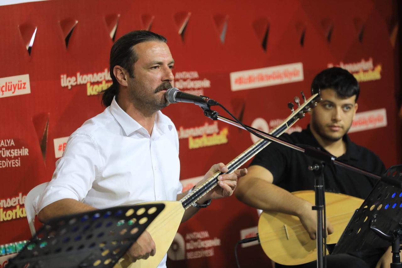 İsmail Baha Sürelsan Konservatuarı’nın kendi bünyesinde kurduğu farklı tarz müzik yapabilen 4 solist ve 12 sazdan oluşan orkestra, Kiremitli Mahallesi Şehitler Anıtı Meydanı’nı dolduran vatandaşları coşturdu. Konseri izlemeye gelenler alkışları ve oyunlarıyla şarkılara eşlik etti. Etkinlik için Antalya Büyükşehir Belediyesi’ne teşekkür eden vatandaşlar, doyasıya eğlenip keyifli vakit geçirdiklerini söyledi.
