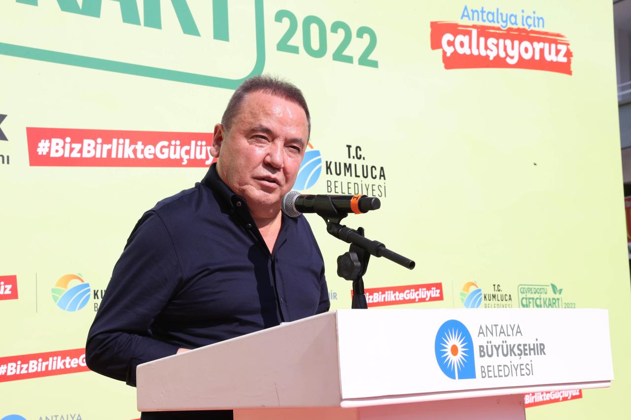 İklim krizi, kuraklık tehdidi, enerji ihtiyacını da dikkate alarak çevre dostu uygulamalar ile tarımı geleceğe taşıyoruz” diyen Başkan Muhittin Böcek, Çevre Dostu Çiftçi Kart Projesi’nin de bunlardan biri olduğunu söyledi. Bundan sonraki süreçte çiftçilerin projeyi sahiplenmesinin çok önemli olduğuna dikkat çeken Başkan Böcek, “İlgili tüm paydaşlarımızla, bölgede projeyi ayakları yere basar hale getireceğiz. Hemen sonraki hedefimiz Finike, Demre gibi tarımsal üretimin yoğun olduğu ilçelerimiz başta olmak üzere tüm Antalya’da projenin uygulanması ve Türkiye’de ilk olan bu projenin örnek alınarak yaygınlaşmasıdır” diye konuştu. Başkan Böcek, ilerleyen dönemde Çiftçi Marketlerin de kurulacağını belirterek, kartta toplanan puanlarla istenilen ürünlerin alınmasının hedeflendiğini açıkladı.