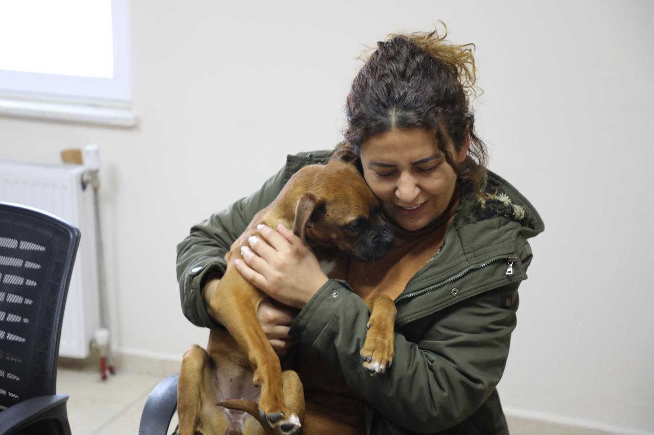 Hasret Yılmaz Kahleoğulları Köfte’ye nasıl ulaştıklarını ve sahiplenme sürecini de şöyle anlattı; “Deprem bölgesindeki öğretmen arkadaşımız aynı zamanda Hatay Akademi orkestrası şefi Ali Uğur depremin 15.gününde tamamen yıkılmış bir evin enkazından Köfte’yi sağ salim çıkarmış. Sosyal medya hesabından paylaşım yapabiliriz, yaralı diye yazdı. Ben deprem bölgesindeki can dostlar için ne gibi hizmetler var hemen araştırdım ve gönüllü veteriner ve çadırları olduğunu öğrendim. Genç bir arkadaş adı Özcan, mühendis. Onlar aracılığı ile Köfte’nin tedavisi yapıldı ama çadırda sadece 2 gün kalabileceği söylendi. Ben sosyal medyada herkesi etiketleyerek paylaşım yaptım, yardım istedim. Biz çevremizdeki komşularımızı kurtaramadık, betonları kaldıramadık gücümüz yetmedi bari bu canı kurtaralım dedim. Hatay barınağının da zarar gördüğünü bildiğim için oraya gitmesini de istemedim. Etiketlediğimiz isimler arasında Muğla Büyükşehir Belediye Başkanı Dr. Osman Gürün ve Büyükşehir Belediyesi de vardı ve bizlere hemen dönüş yapıldı. Büyükşehir Belediyesi ekipleri Köfte’nin sağ salim Muğla’ya getirilmesini sağladı ve tedavi sürecini başlattı. İncelemeler sonucunda kalça kısmında ezilme olduğu söylendi ve tedavisinin ardından bize verileceği bildirildi. Bugün de tedavisi tamamlandığı için Köfte’yi almaya geldik. İsmini de Hatay’da ilk tedavisini yapan Özcan koydu, abla Köfte’ye benziyor, ismi Köfte olsun dedi. Buruk bir mutluluk yaşıyoruz. İlk defa köpeğimiz olacak. Emeği geçen Başta Muğla Büyükşehir Belediye Başkanı Dr. Osman Gürün ve ekibine çok teşekkür ederim” dedi.