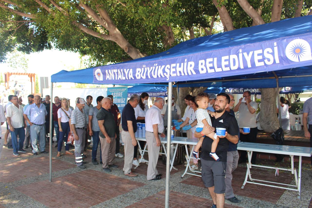 Alanya’da aşureler ilçenin üç farklı noktasında vatandaşla buluştu. Alanya merkezde Atatürk Anıtı Meydanı’nda, Mahmutlar’da belediye binası önünde, Konaklı’da ise Saat Kulesi önünde toplam 3 bin 500 kişilik aşure ikram edildi. Vatandaşların yanı sıra turistler de ikram edilen aşurenin tadına baktı.