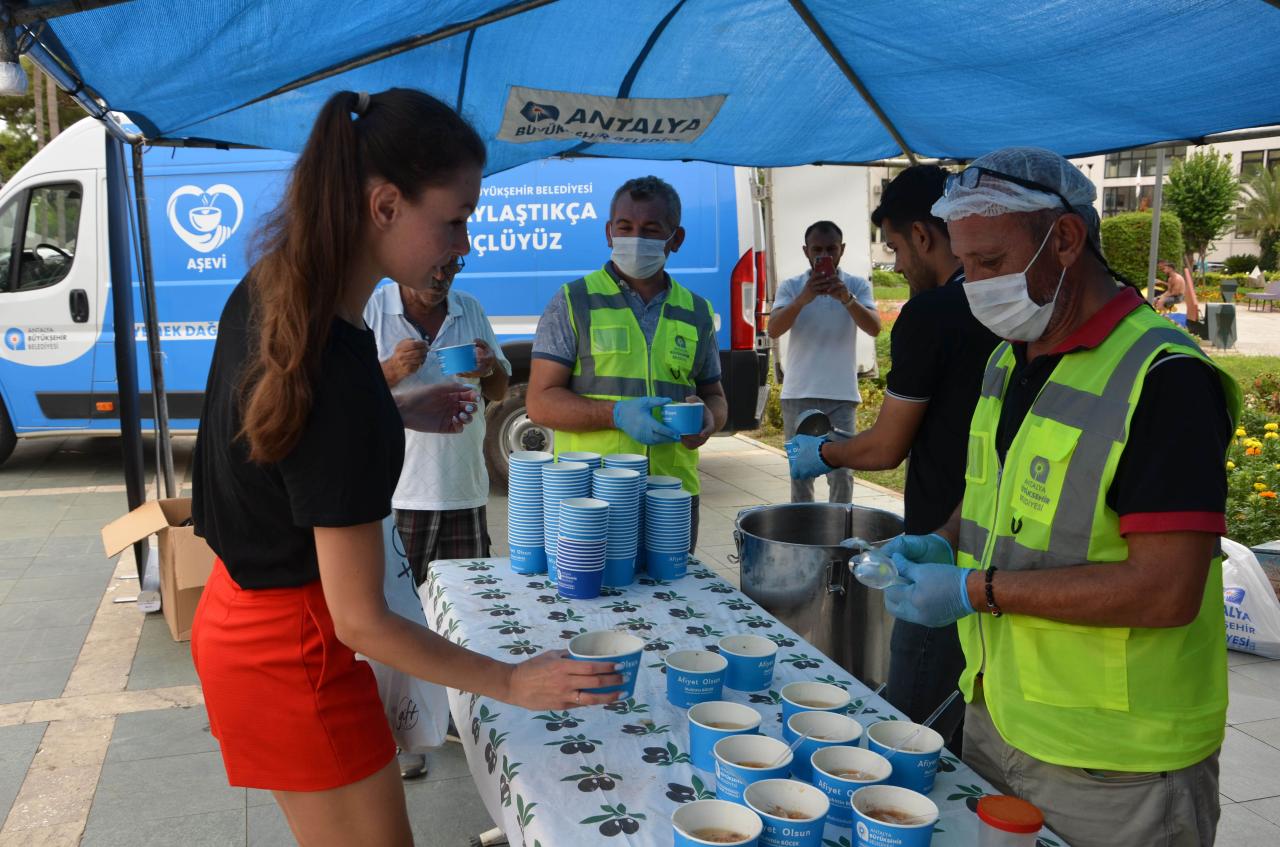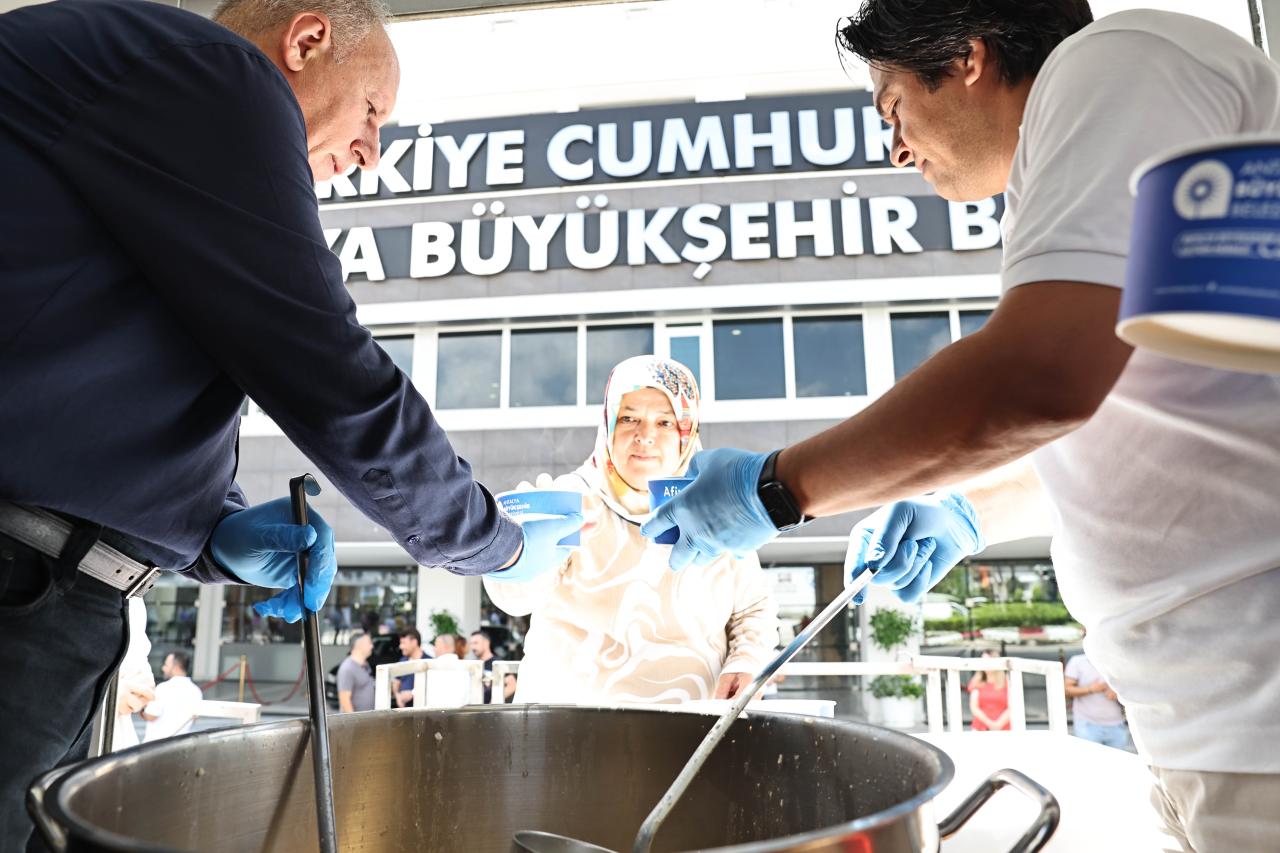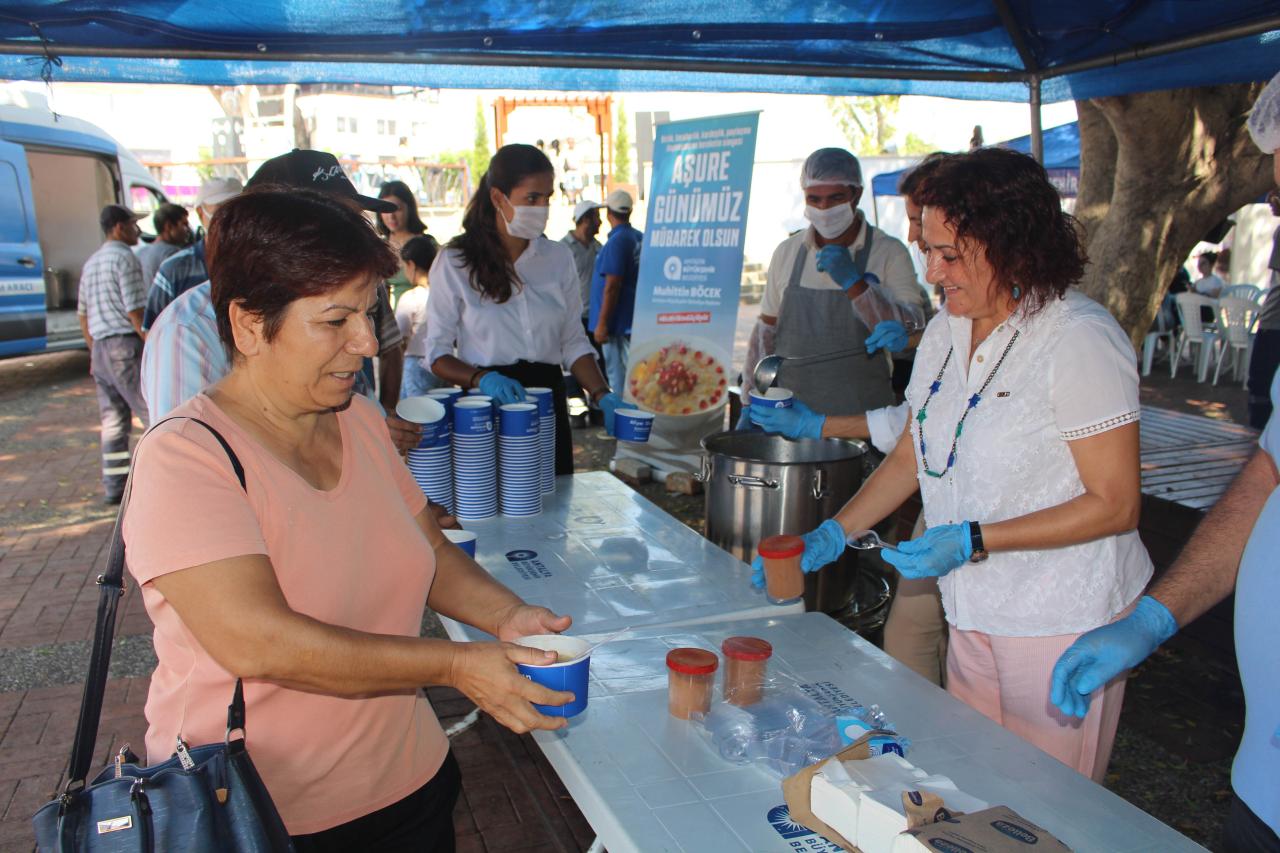Antalya Büyükşehir Belediyesi, Muharrem ayı nedeniyle gerçekleştirilen aşure ikramlarında personelini de unutmadı. Büyükşehir Belediyesi Hizmet Binası önünde mobil aşevinde gerçekleştirilen etkinlikte Antalya Büyükşehir Belediyesi Sosyal Hizmetler Dairesi Başkanı Güven Ulutekin ve Bilgi İşlem Dairesi Başkanı Cemil Böcek personele aşure ikramında bulundu.
