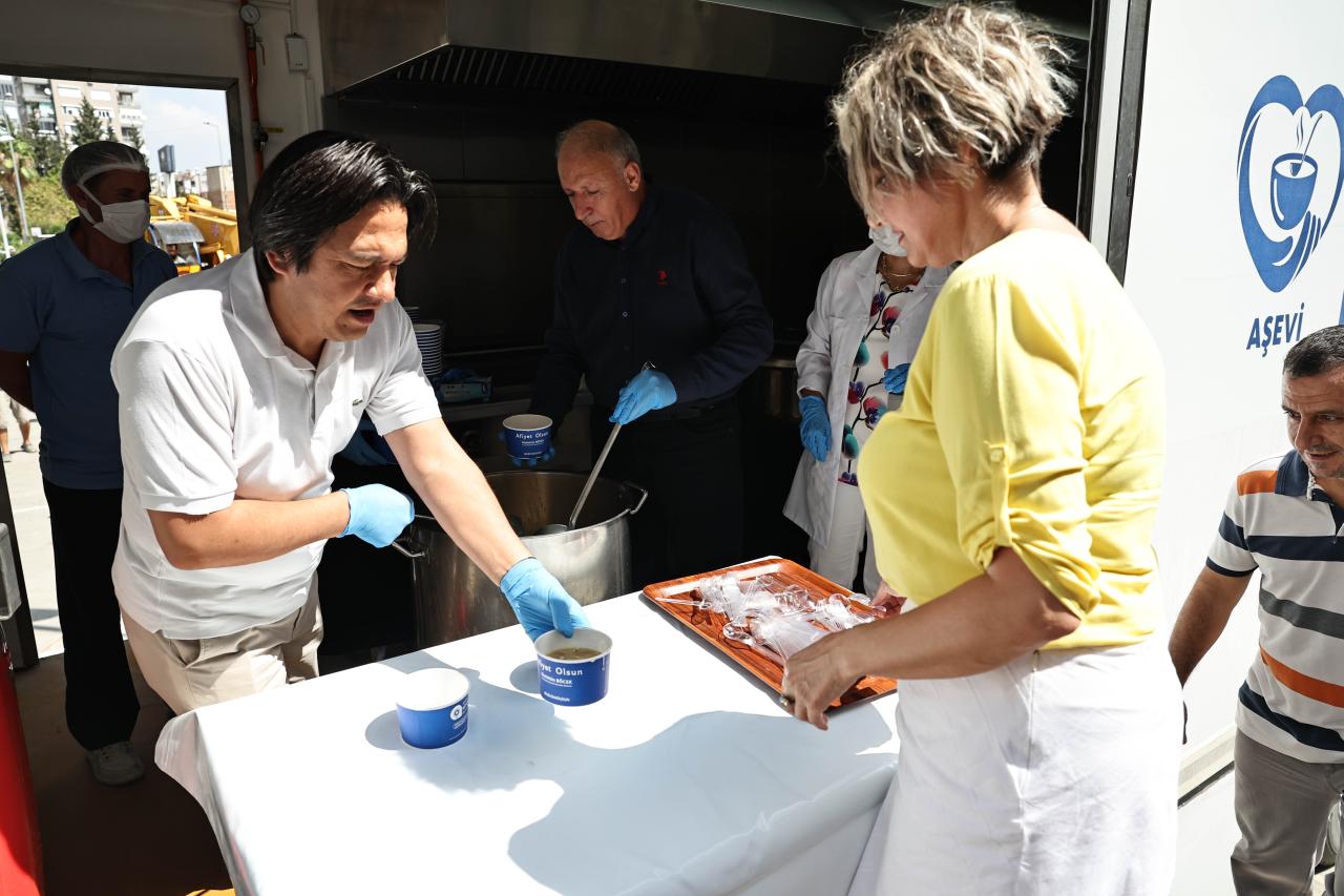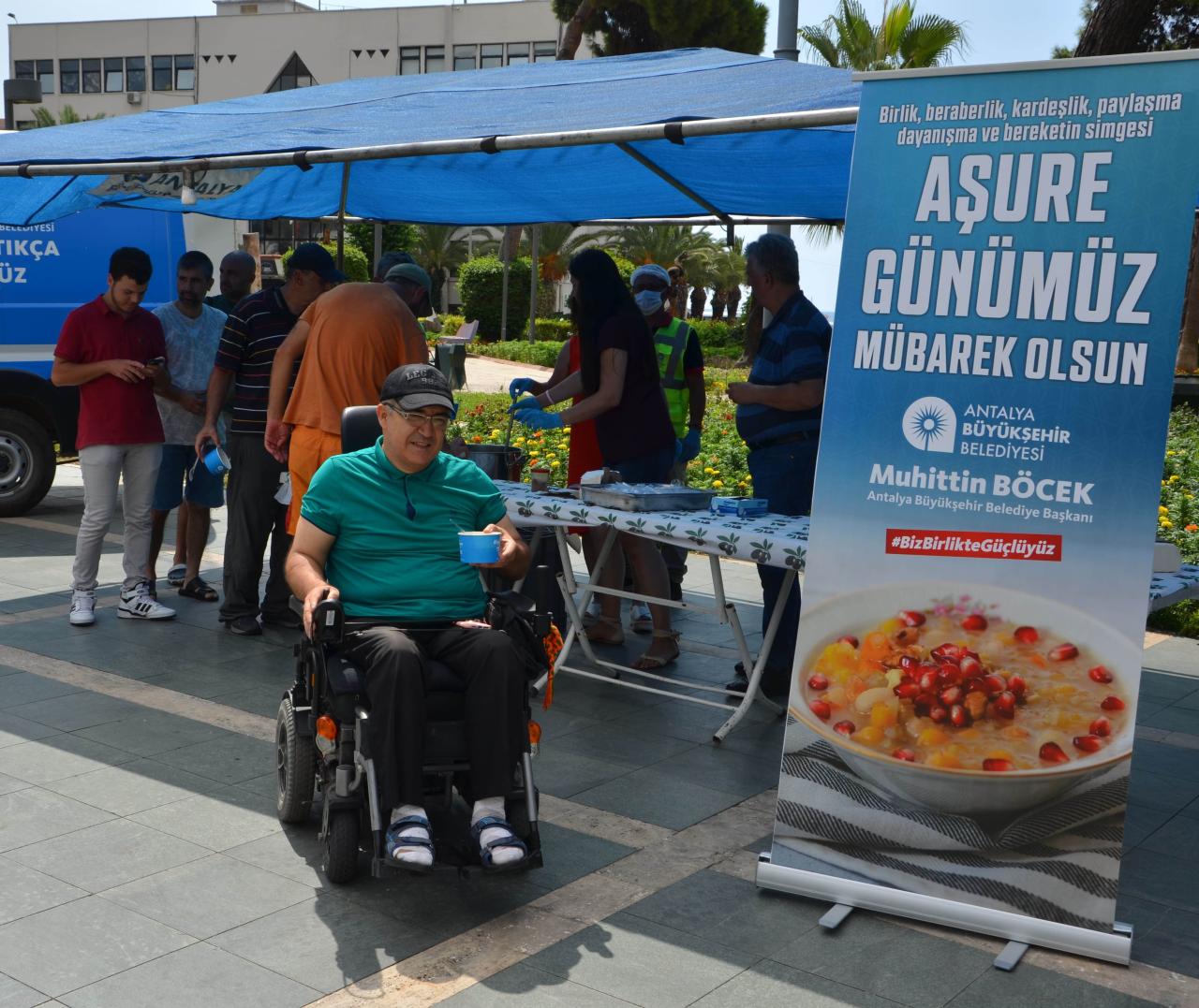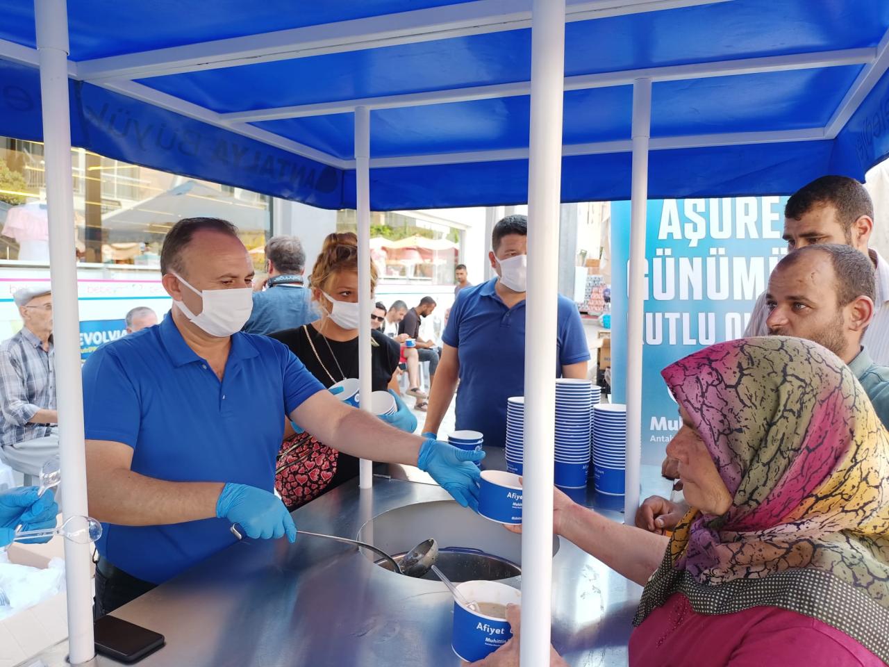 Antalya Büyükşehir Belediyesi, Muharrem ayı nedeniyle gerçekleştirilen aşure ikramlarında personelini de unutmadı. Büyükşehir Belediyesi Hizmet Binası önünde mobil aşevinde gerçekleştirilen etkinlikte Antalya Büyükşehir Belediyesi Sosyal Hizmetler Dairesi Başkanı Güven Ulutekin ve Bilgi İşlem Dairesi Başkanı Cemil Böcek personele aşure ikramında bulundu.