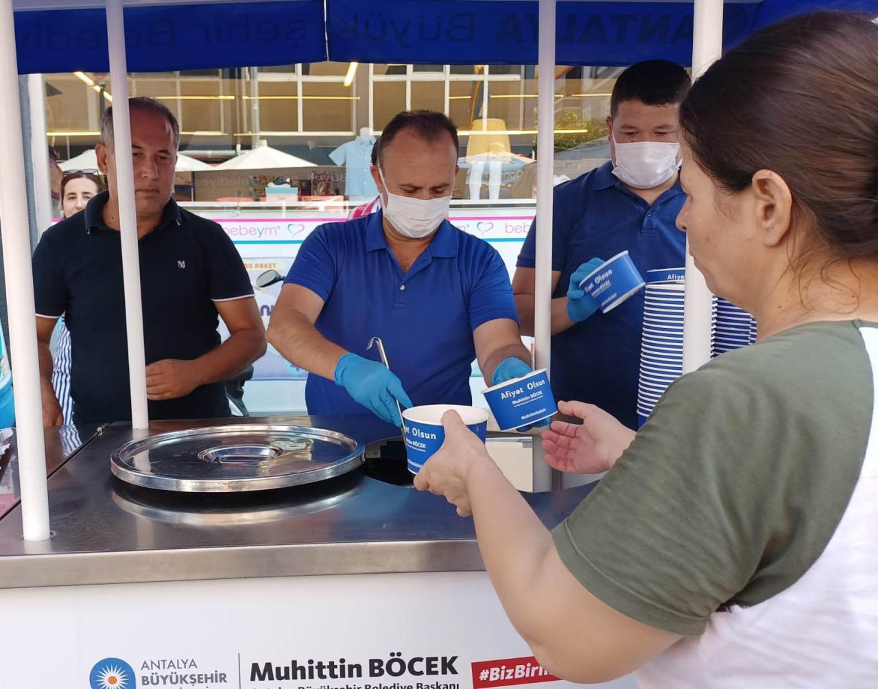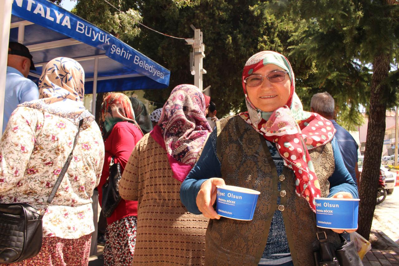 Muharrem Ayı boyunca merkez ve ilçelerde 40 bin kişilik aşure dağıtacak olan Antalya Büyükşehir Belediyesi’nin ikramları sürüyor. Büyükşehir Belediyesi Sosyal Hizmetler Dairesi Başkanlığı Alanya, Gündoğmuş, Elmalı, Manavgat, Korkuteli, Döşemealtı ve Serik’te binlerce vatandaşa aşure dağıttı.