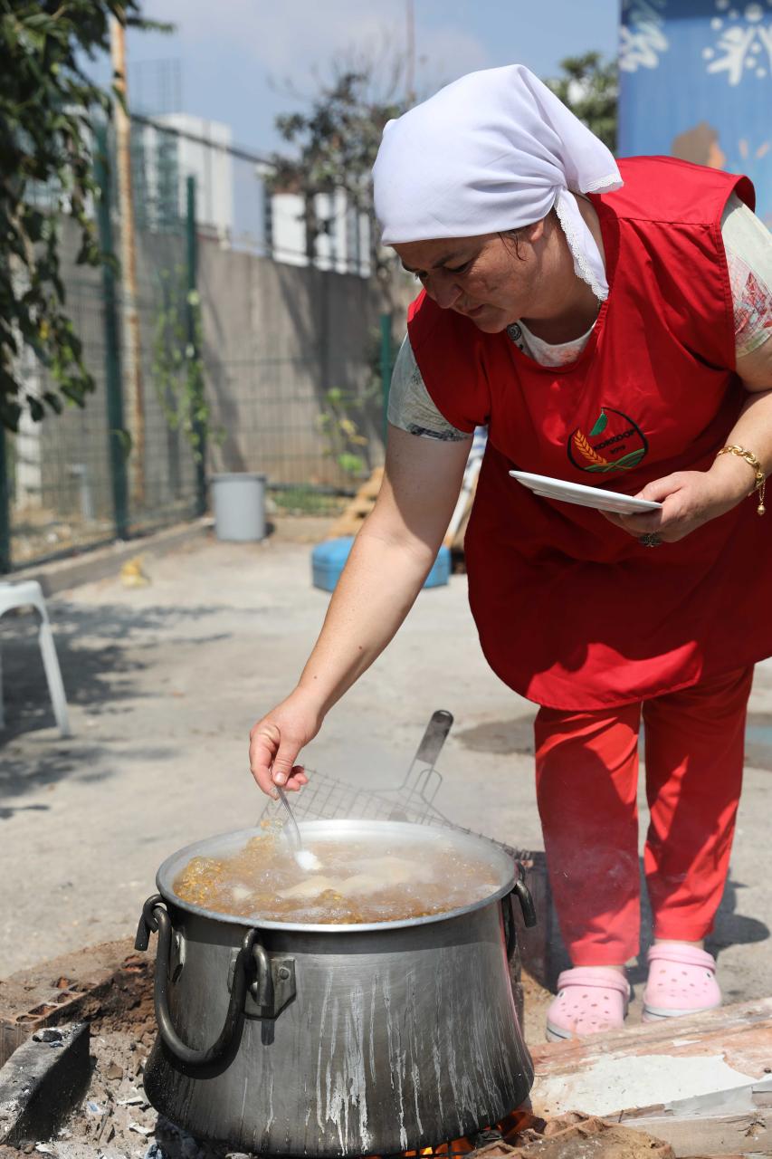 Toptancı Hal içinde yer alan tesis hakkında bilgi veren Güliz Yaman, “Bu tesisler bünyesinde hem hijyene yönelik çalışmalar yapıldı, hem de üretime yönelik bütün eksikler giderildi. Hamur yoğurma makinesinden bulaşık makinesine, salça kaynatma makinelerinden hamur kesme makinelerine ve gıda üretimine yönelik malzemelerimiz mevcut. Aynı zamanda burada kadınlarımızın çocuklarını rahatça emanet edebilecekleri bakım evi oluşturduk. Kadınlarımız çocuklarını emanet ederek gönül rahatlığıyla çalışabiliyorlar” diye konuştu.