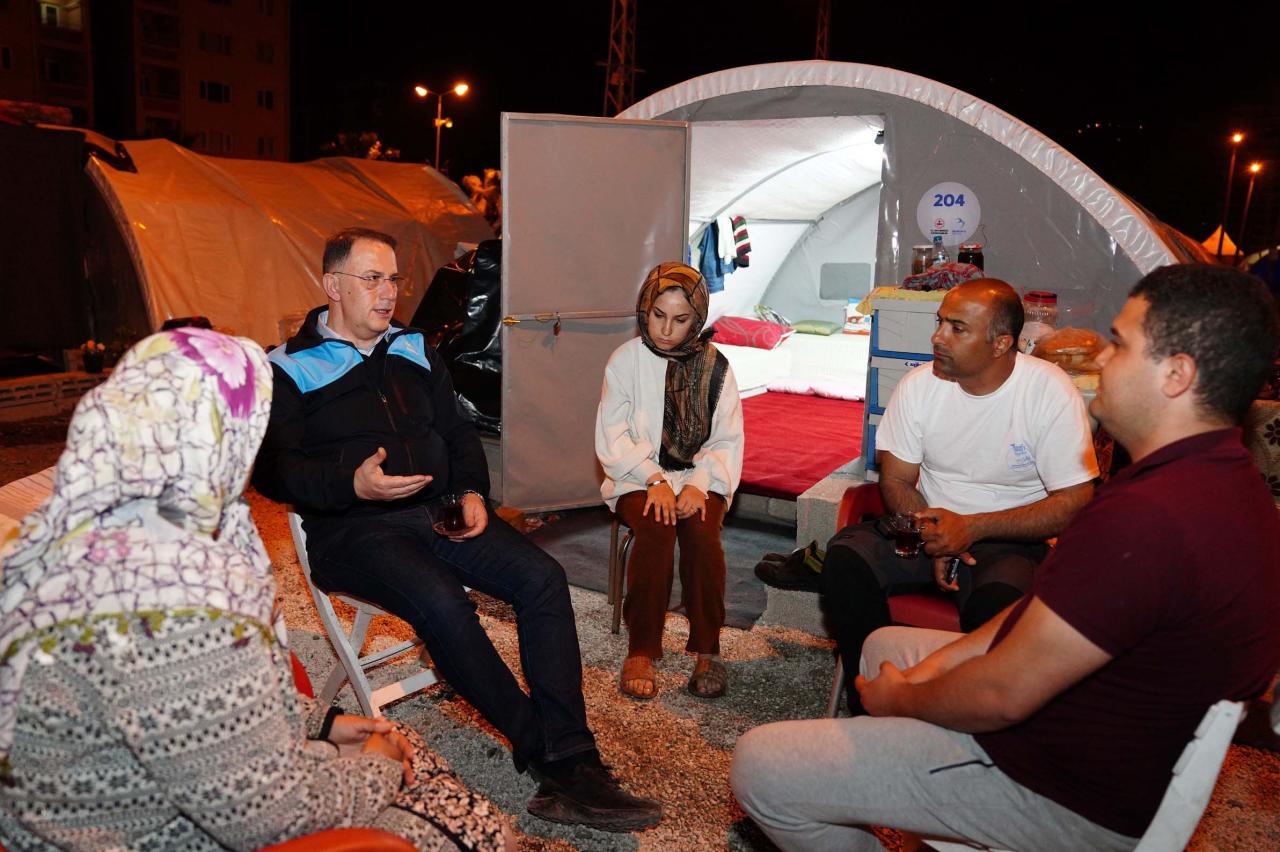 Beylikdüzü Belediyesi tarafından Hatay İskenderun’da kurulan ve 3 binden fazla depremzedeye yuva olan çadır kentte ilk iftar yapıldı. Bölgeye giderek çadır kentin faaliyetlerini yerinde inceleyen Beylikdüzü Belediye Başkanı Mehmet Murat Çalık, ilk iftarını depremzedelerle birlikte yaptı. Başkan Çalık’ın yanı sıra CHP Hatay Milletvekili Mehmet Güzelmansur ve Hatay Büyükşehir Belediye Başkanı Lütfü Savaş da oruçlarını depremzedelerle birlikte açtı. Tutulan oruçların ve edilen duaların kabul olmasını dileyen Çalık, yemeğin ardından çadır kentteki vatandaşlarla çay içerek sohbet etti. Çalık, daha sonra İskenderun Belediye Başkanı Fatih Tosyalı’yı ziyaret ederek geçmiş olsun dileklerini iletti.