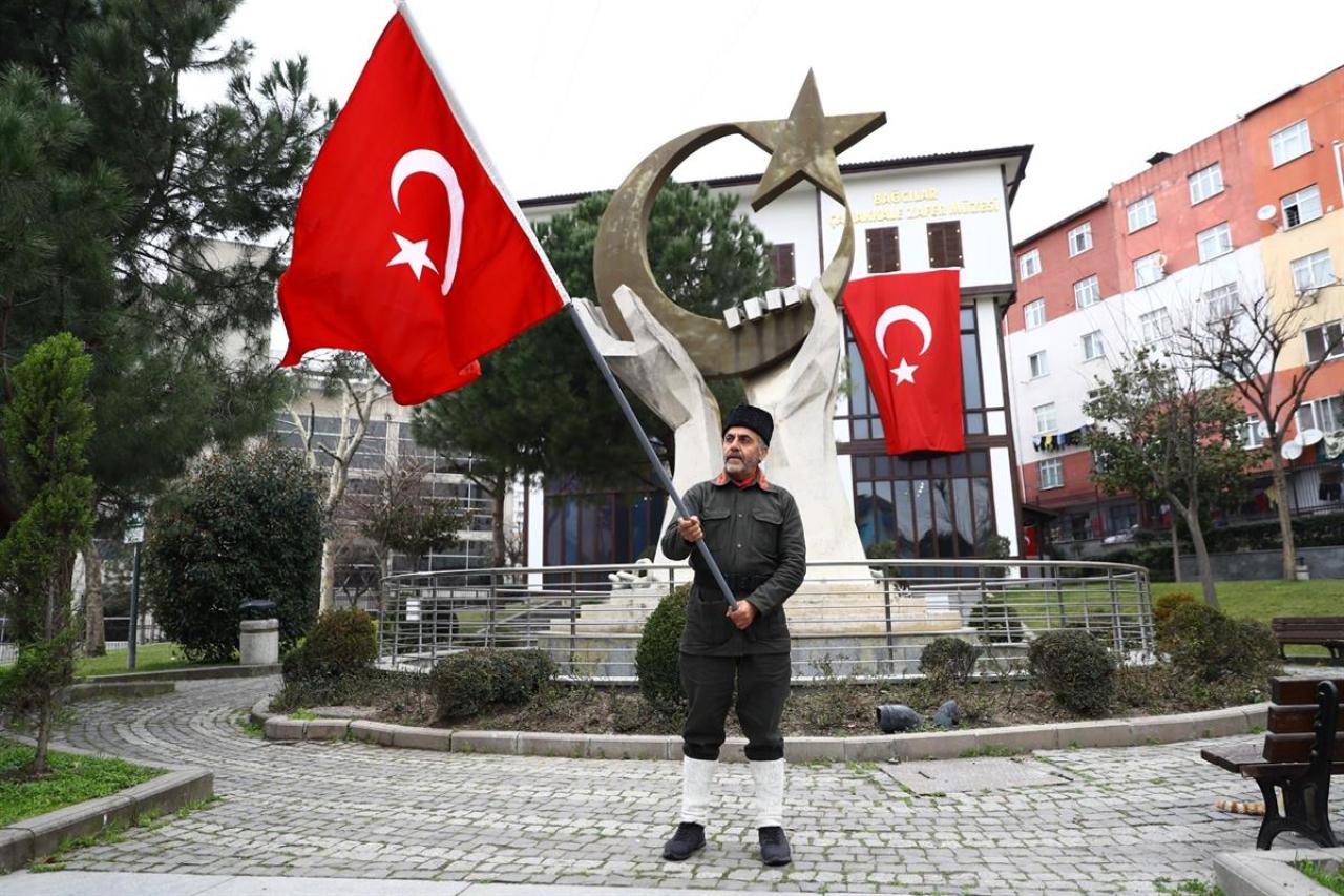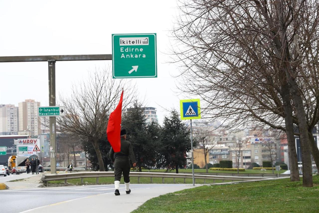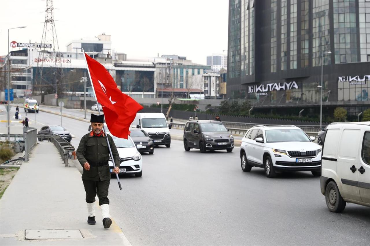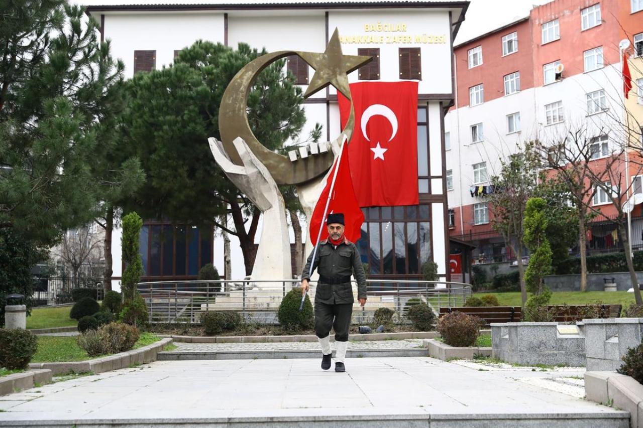 Çanakkale Deniz Zaferi'nin 108’inci yılında Bağcılar Belediyesi’nin desteğiyle “Torundan Dedeye Vefa Yürüyüşü” düzenleniyor. Etkinlik kapsamında Tokat Onbeşli Torunları Derneği Başkanı Saffet Gümüş, Bağcılar’dan Çanakkale’ye yürüyecek. Hazırlıklarını tamamlayan Gümüş, bugün öğlen saatlerinde üzerinde dönemin asker üniforması ve Türk Bayrağıyla Bağcılar Belediyesi Çanakkale Zafer Müzesi önünden yola çıktı.