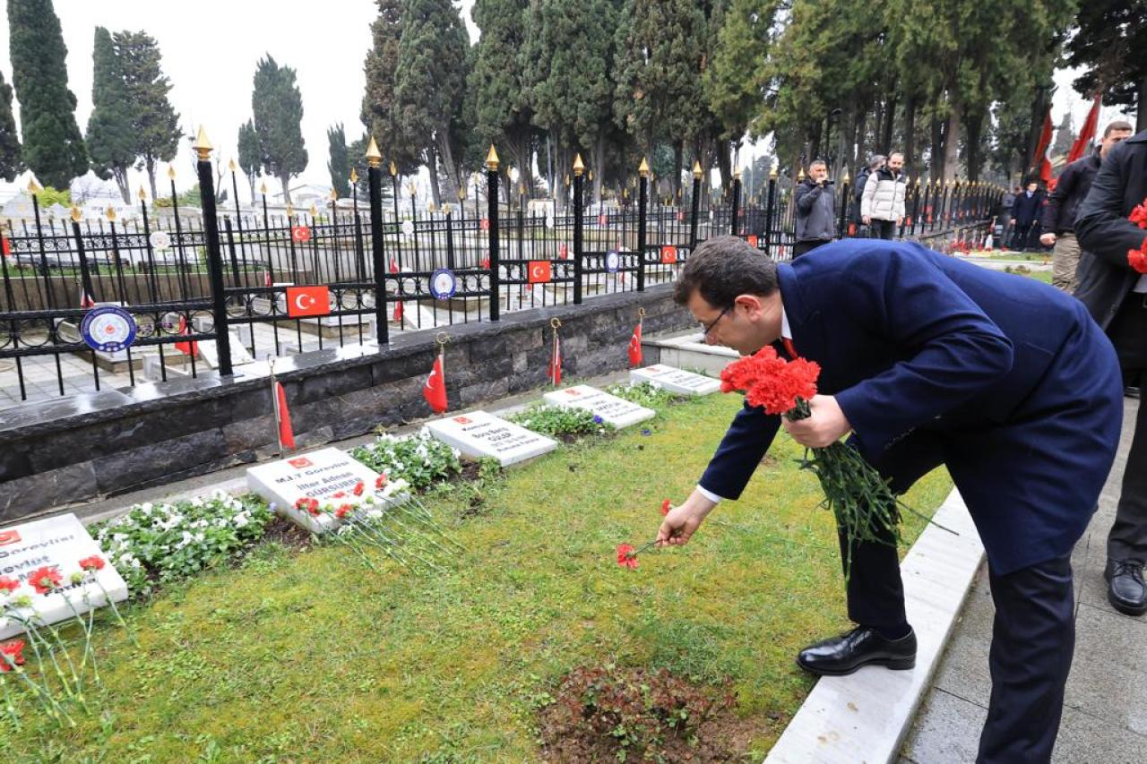 18 Mart Çanakkale Zaferi’nin 108’inci yıldönümü nedeniyle Edirnekapı Şehitliği’nde anma töreni düzenlendi. İstanbul Valisi Ali Yerlikaya, İstanbul Garnizon Komutanlığına vekaleten 3.Kolordu Komutanı Korgeneral Levent Ergün, İstanbul Büyükşehir Belediye (İBB) Başkanı Ekrem İmamoğlu ile Türkiye Harp Malulü Gaziler Şehit Dul ve Yetimleri Derneği İstanbul Şubesi Başkanı Önder Çelik, Edirnekapı Şehitliği’ndeki Çanakkale Anıtı’na çelenk bıraktı. Şehit yakınları ve gazilerin de katıldığı tören, saygı duruşunda bulunulması, saygı atışı yapılması ve İstiklal Marşı’nın okunmasıyla devam etti. Yağmur altında gerçekleştirilen törende; Çelik bir konuşma yaparken, Vali Yerlikaya, Şehitlik Defteri’ne duygularını yazdı. Anıt önündeki anma, İstanbul İl Müftüsü Prof. Dr. Safi Arpaguş’un okuduğu dualarla sona erdi. Resmi anmaya katılan protokol, törenin ardından Edirnekapı Şehitliği’ndeki şehit kabirlerini ziyaret etti ve şehit yakınlarının acılarına ortak oldu.