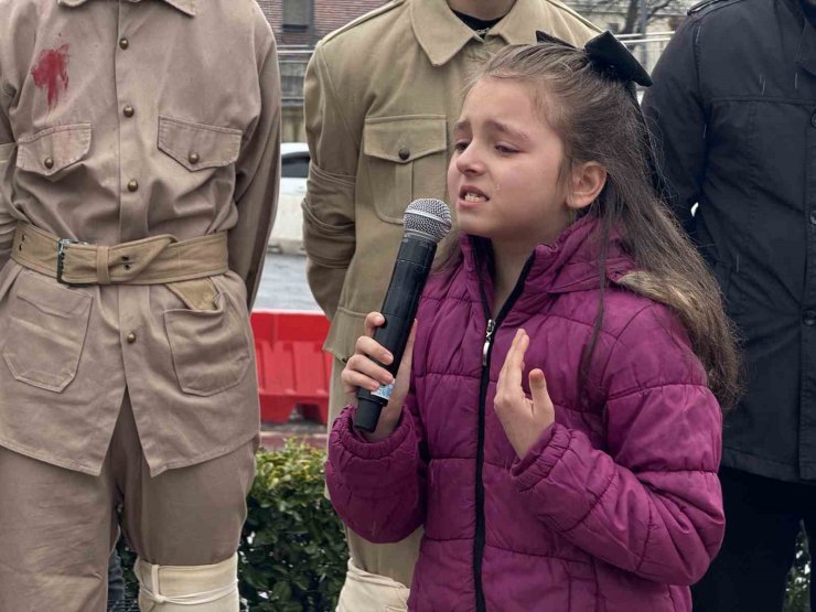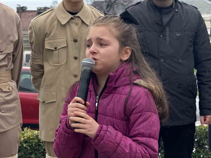 ÇANAKKALE ZAFERİ ANMASINDA ŞİİR OKUYAN 10 YAŞINDAKİ KIZ ÇOCUĞUNUN GÖZYAŞLARI