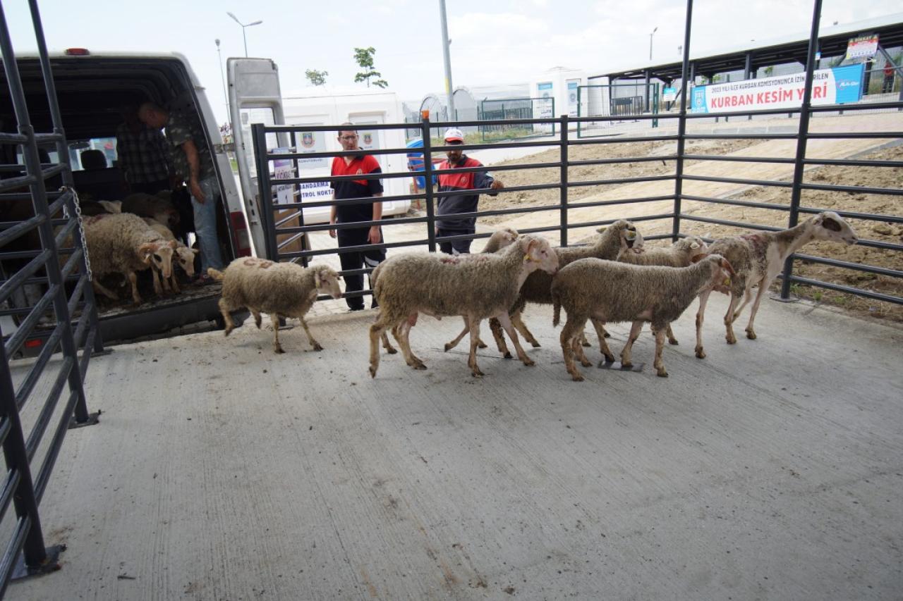 Diğer yandan pazarda oluşturulan kesim alanında ise İslami usullere uygun ve hijyenik bir şekilde kurban kesimleri de yapılabiliyor.