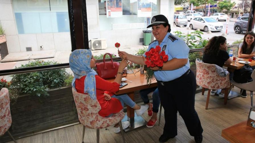 ÇEKMEKÖY’DE ZABITA EKİPLERİ BU KEZ ÇİÇEK DAĞITTI