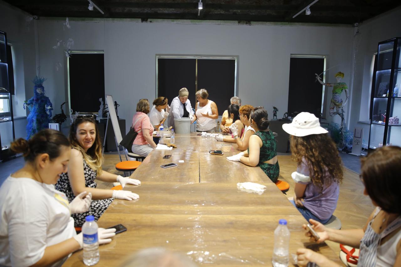 Merkezde sanatsal çalışmalar da yapılıyor. Antalya Büyükşehir Belediyesi Çevre Eğitim ve İnovasyon Merkezi Temmuz ayı programı kapsamında Resim ve Heykel sanatçısı Nazan Uzungöl Köse, kağıt hamuru ile çevre dostu heykel yapımını anlattı. 15 yıldır eşi Hüseyin Köse ile birlikte kağıt sanat ürünleri ile uğraşan Nazan Uzungül Köse kağıtların nasıl sanat eserine dönüşebileceğini uygulamalı olarak gösterdi. “Sadece kağıt değil evimizde kullanmadığımız bir çok materyali sanat eserine çevirebiliriz” diyen Köse, insanın yaratıcılığını kullanarak çevre sorunlarına çözüm getirebileceğini, bize dayatılan plastik materyallerin, kimyasalın aslında şart olmadığını, doğal malzemelerle bu tarz sanat ürünlerinin ortaya çıkarılabileceğini ifade etti.